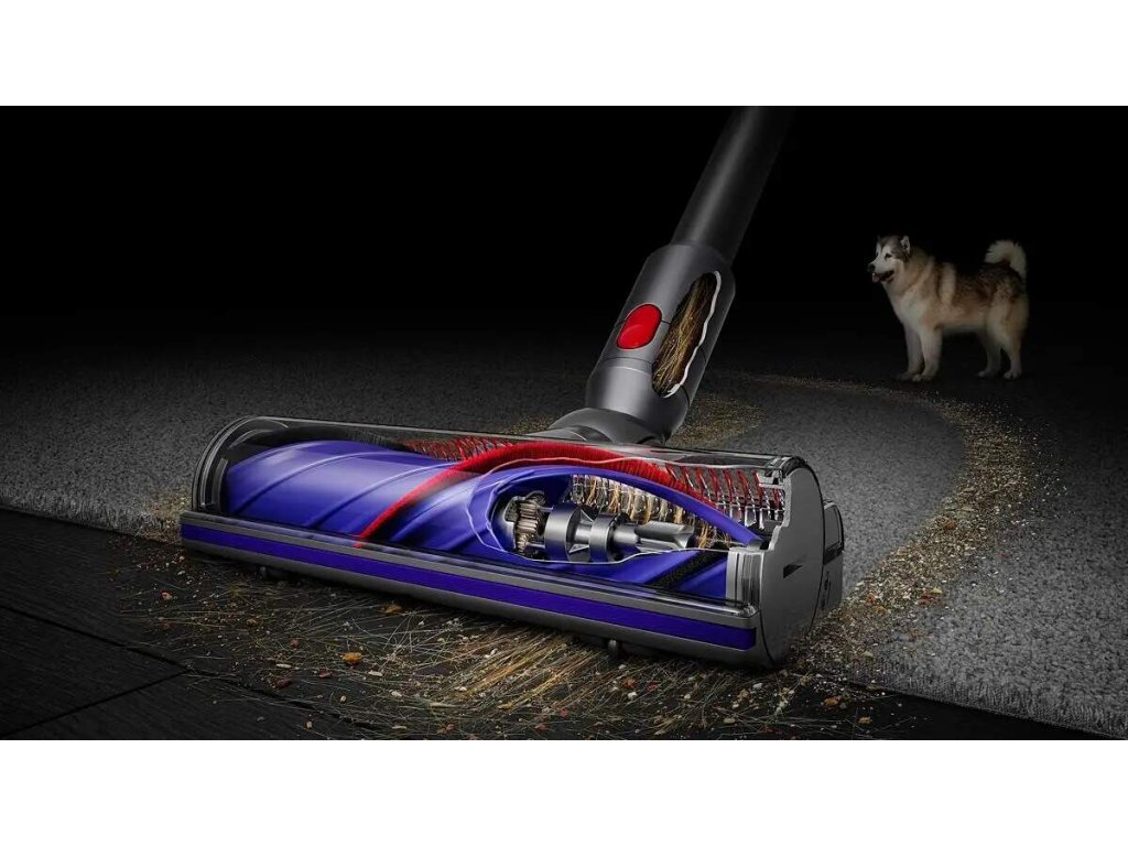 - Podlahová hubica Motorbar™ s integrovanými zubmi proti namotávaniu: Integrovaný motor otáča rotačnou kefou podlahovej hubice až 60krát za sekundu. Vďaka nemu tuhé nylonové štetiny kefy prenikajú hlboko do koberca a odstraňujú nečistoty, zatiaľ čo karbónové vlákna zachytia jemný prach na tvrdých podlahách.