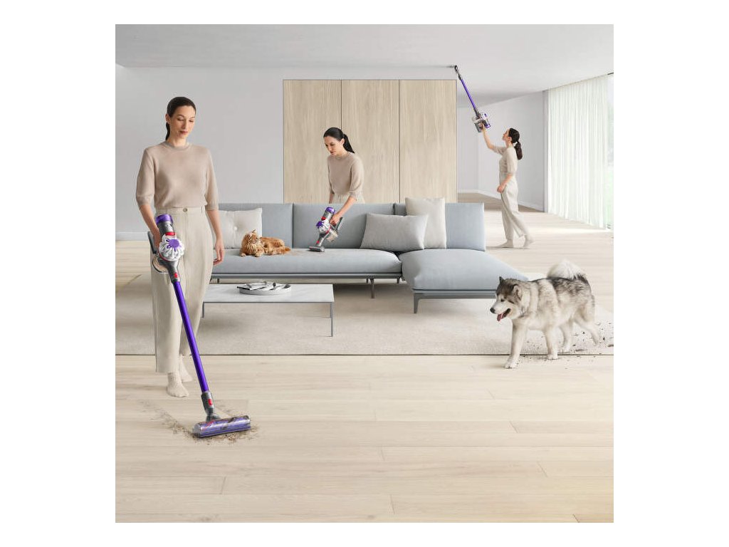 Digitálny motor Dyson V8 zabezpečuje čistenie celej domácnosti. Až 40 minút sania bez poklesu výkonu.