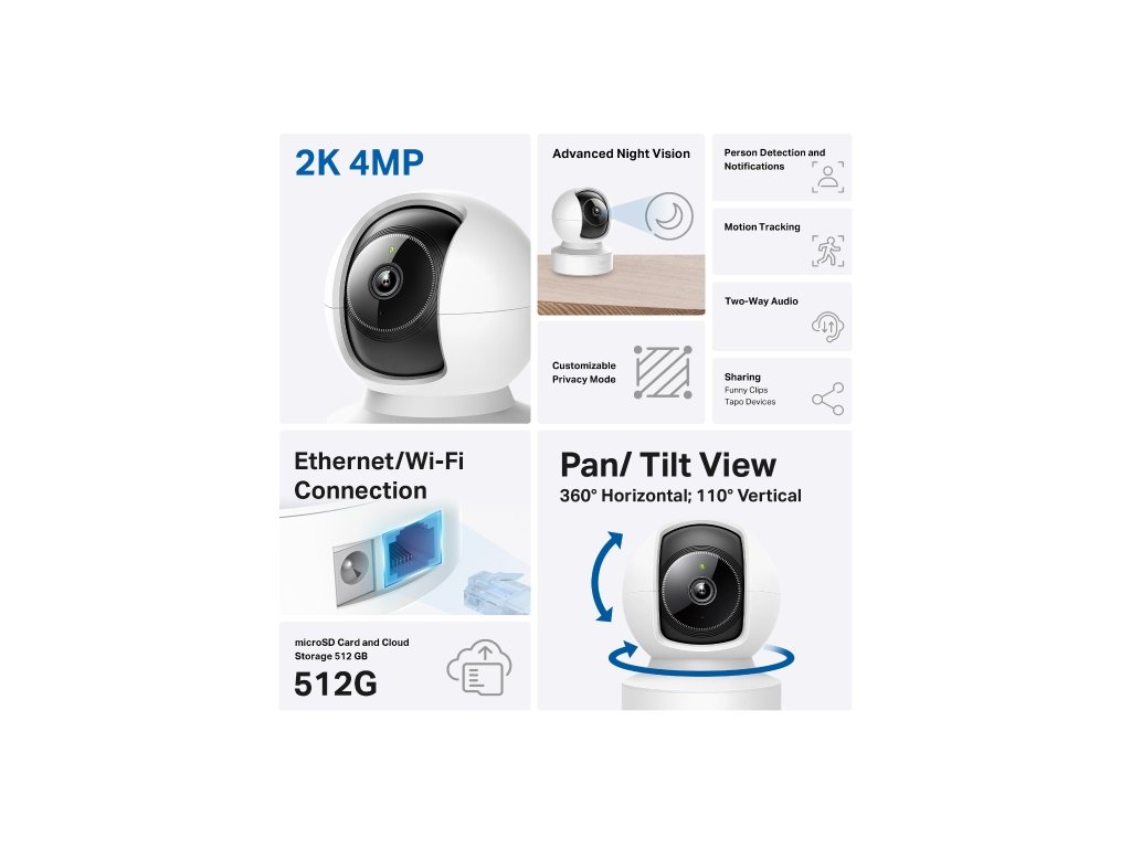 Tapo C222 je inteligentná domáca bezpečnostná Wi-Fi kamera s mimoriadne zaujímavými funkciami pre komplexné monitorovanie priestoru: