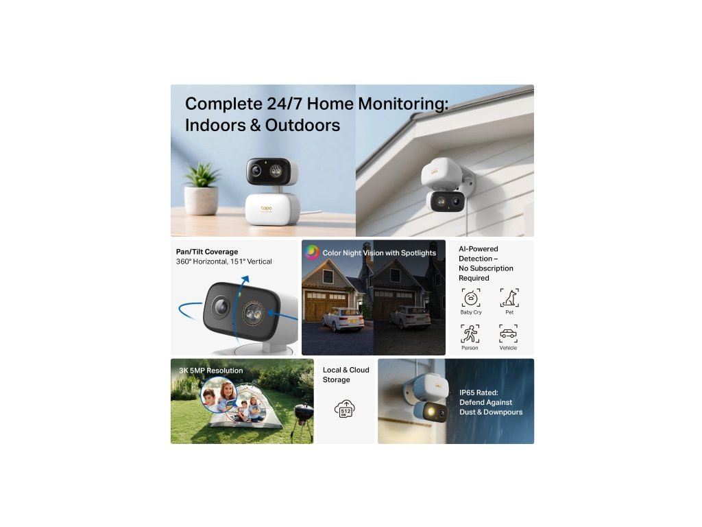 Tapo C236 poskytuje spoľahlivé sledovanie vo vnútri aj vonku. S ratingom IP65 odoláva silnému dažďu a prachu, čo je ideálne na sledovanie balíkov a vozidiel vonku, alebo na dohľad nad kľúčovými priestormi vo vnútri, ako je detská izba.
