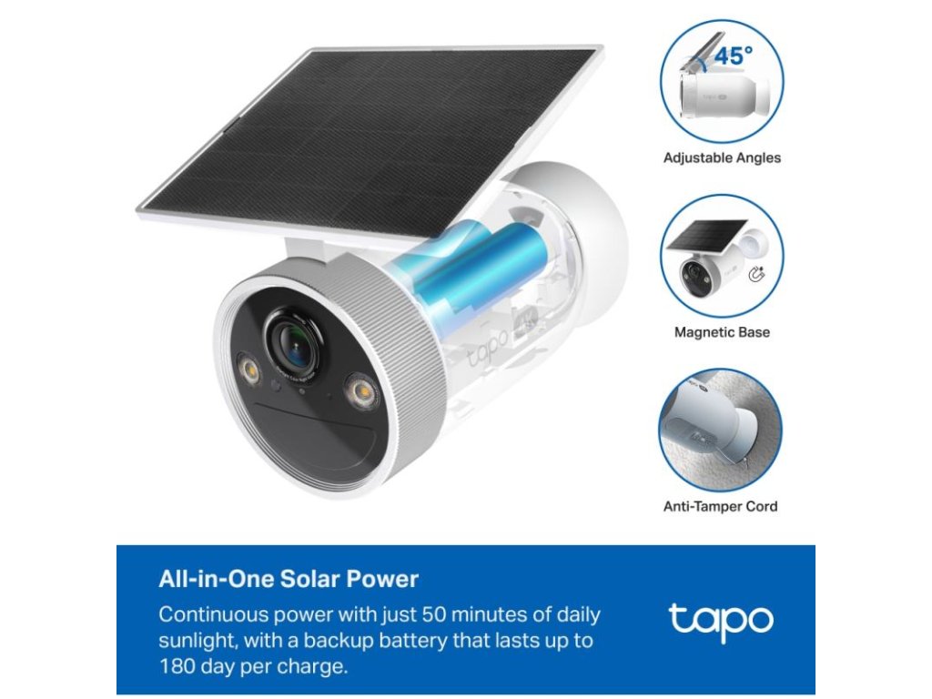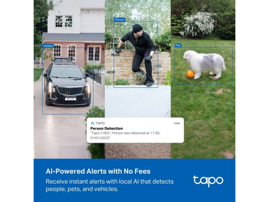 Tapo C465 je ideálne riešenie pre tých, ktorí hľadajú spoľahlivú a inteligentnú bezpečnostnú kameru s jednoduchou inštaláciou a nepretržitou prevádzkou.
