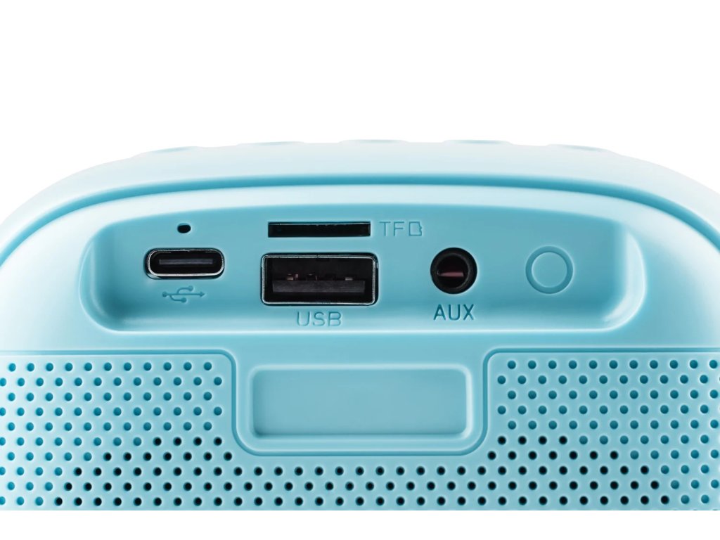 Dětský reproduktor můžete propojit přes Bluetooth V5.4 se smartphonem či tabletem a jednoduše streamovat přímo ze zařízení bez nutnosti používat kabely. Využít ale také můžete USB a AUX vstupu či slotu na Micro SD karty a přehrávat hudbu přímo z externích zařízení.