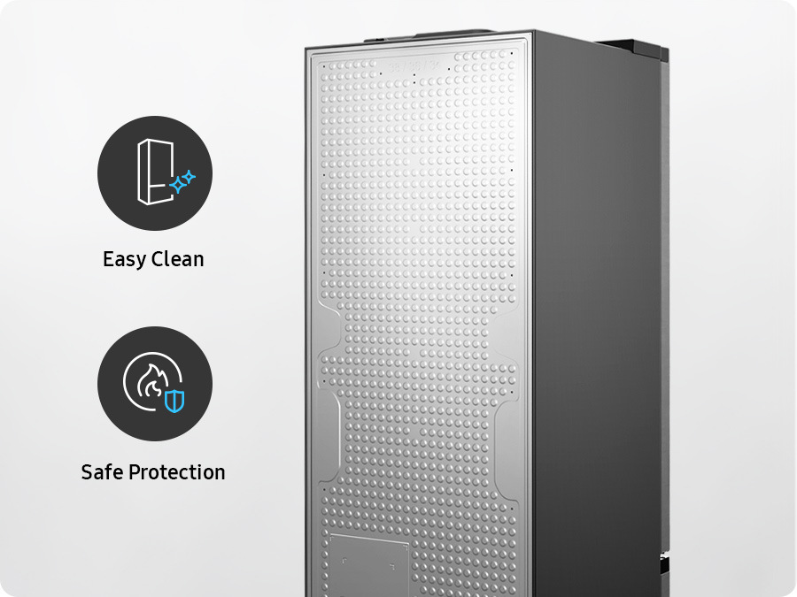 Nemáme ju síce na očiach, ale občas je nutné vyčistiť aj zadnú stranu spotrebiča. Na komplikovaný systém rôznorodých cievok a potrubí sadá prach a nie je vôbec ľahké sa k nim dostať. Spoločnosť Samsung preto prišla so sofistikovaným riešením v podobe hladkej zadnej strany Clean Back, ktorá nielen, že pôsobí príjemne a esteticky, ale zároveň jednotlivé komponenty chráni a poskytuje tak oveľa vyššiu odolnosť chladničky pred opotrebovaním. Navyše sa ľahko čistí – stačí zotrieť nečistoty vlhkou handričkou a nemusíte sa namáhať piplavou a nebezpečnou prácou s jednotlivými drobnými časťami chladničky.
