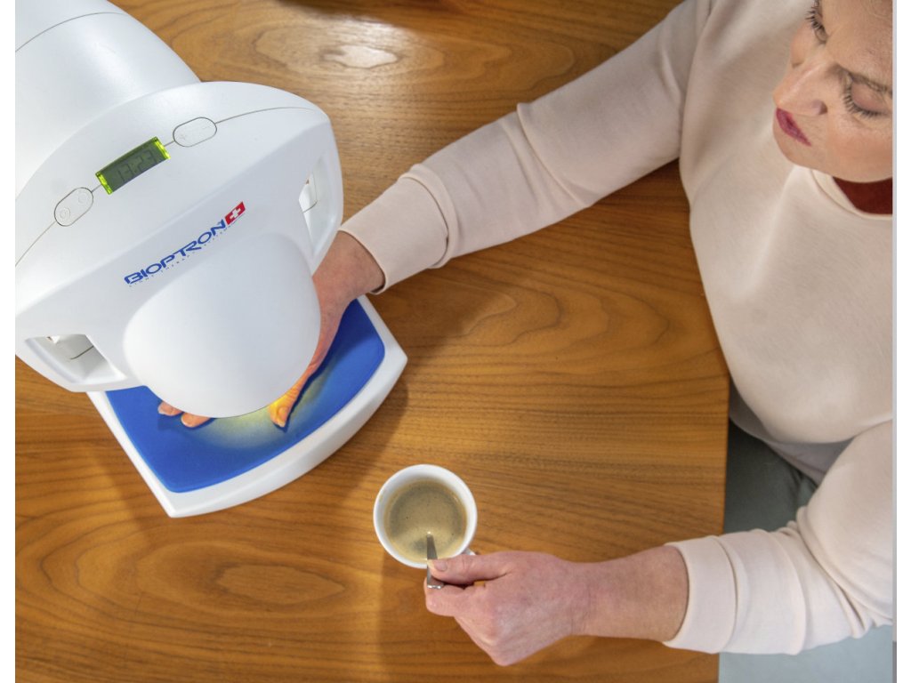 Priemer filtra BIOPTRONU Pro 1 (cca 11 cm) umožňuje ošetrenie malých i veľkých častí ľudského tela. S novou funkciou režimu spánku udržiavajte váš BIOPTRON stále pripravený na použitie, s takmer nulovou spotrebou energie.
