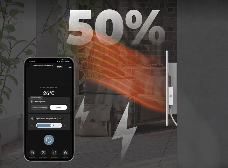 Úsporná prevádzka dosahuje spotrebu 160 Wh – 700 Wh pre vysokú účinnosť a rovnomerné rozloženie tepla. V porovnaní s bežnými ohrievačmi ušetríte až 50 % nákladov. Panel nezaťaží sieť počas rýchleho nástupu spotreby.