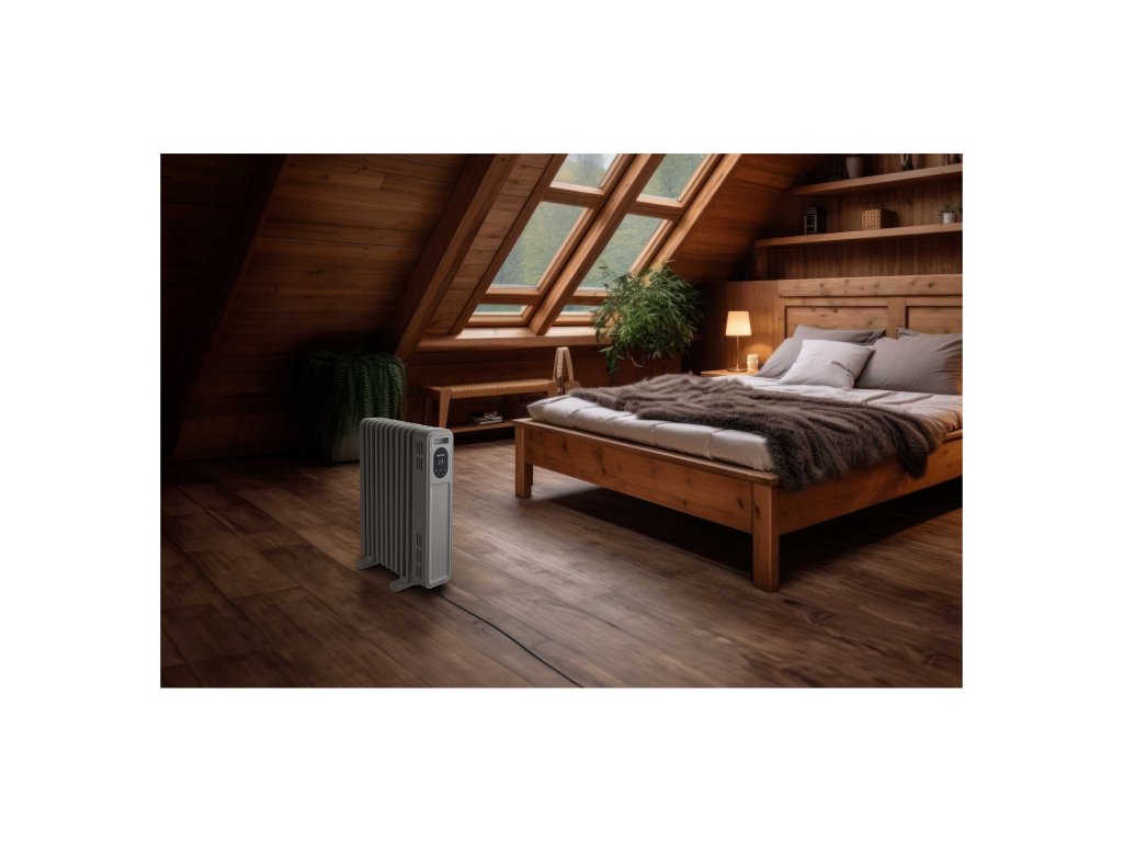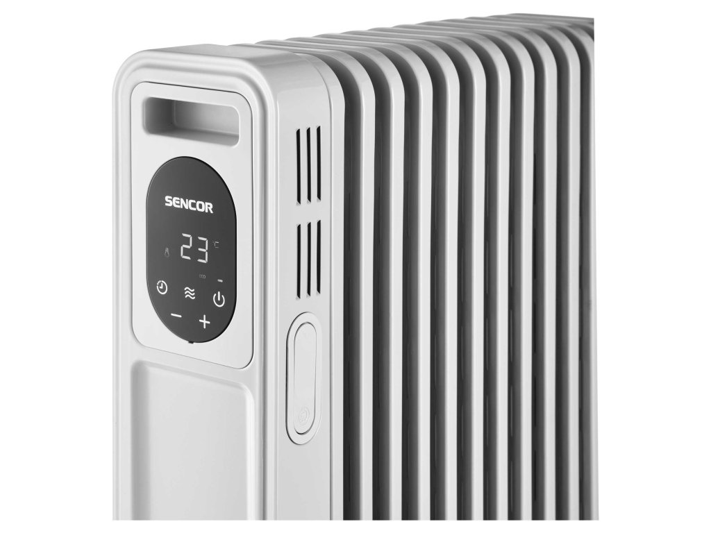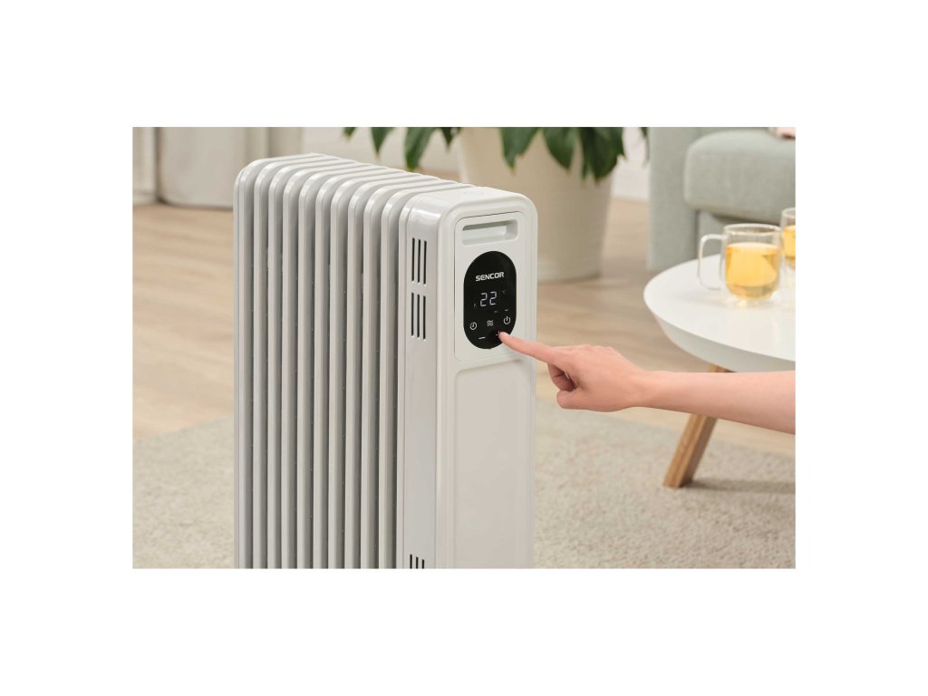 Na chalupe, v kancelárii, v dielni alebo v spálni – všade tam, kde si potrebujete zakúriť či prikúriť, oceníte bezhlučnú prevádzku, rýchly nábeh ohrievacieho výkonu aj vysokú akumulačnú schopnosť digitálnych olejových radiátorov SENCOR s ohrievacími článkami FLAT SHAPE. Digitálny ovládací panel umožňuje pohodlné nastavenie cieľovej teploty v rozsahu 5 až 35 °C. Poruke je aj diaľkový ovládač. Digitálne olejové radiátory sú v bielej farbe v dvoch verziách, buď s 11 alebo 13 ohrievacími rebrami.