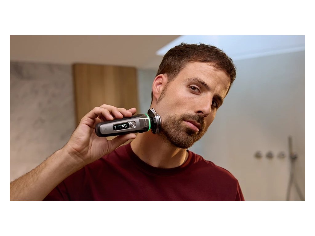 Inteligentný snímač holiaceho strojčeka sníma hustotu fúzov 500-krát za sekundu a automaticky prispôsobuje strihací výkon na bezproblémové a šetrné oholenie aj na hustých bradách.