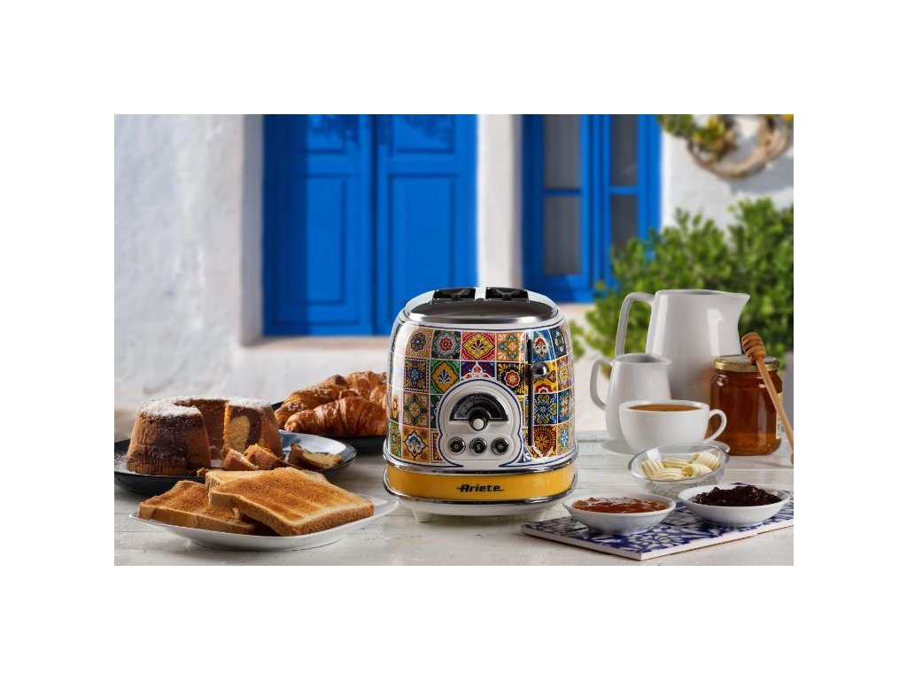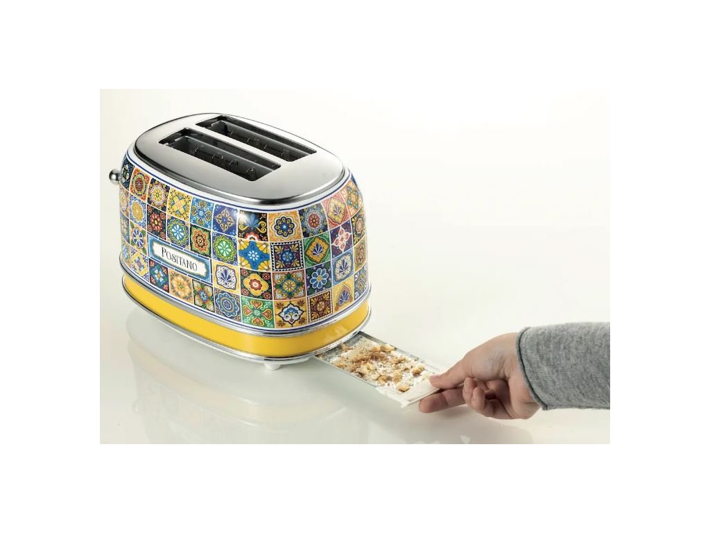 Štýlový hriankovač na dve hrianky v dizajne tradičnej pestrofarebnej keramiky z juhotalianskeho Positana vo vás každé ráno prebudí radosť a hravosť. Tento hriankovač ľahko a rýchlo pripraví perfektne prepečené hrianky pre každého. Vďaka šiestim úrovniam opekania vám ich prichystá presne tak, ako to máte radi. Samozrejmosťou je aj funkcia rozpekania mrazeného pečiva. Hriankovač má automatické vysunutie a vyberateľnú misku na omrvinky pre jednoduchú údržbu.