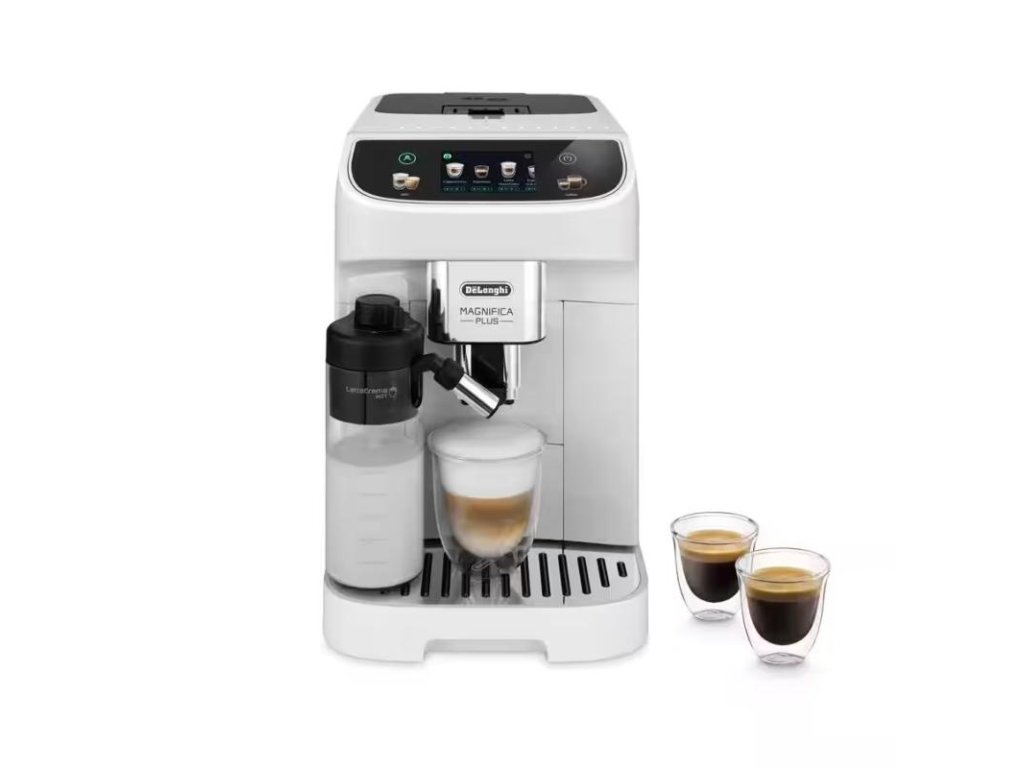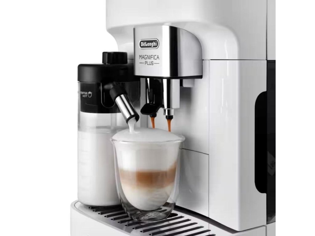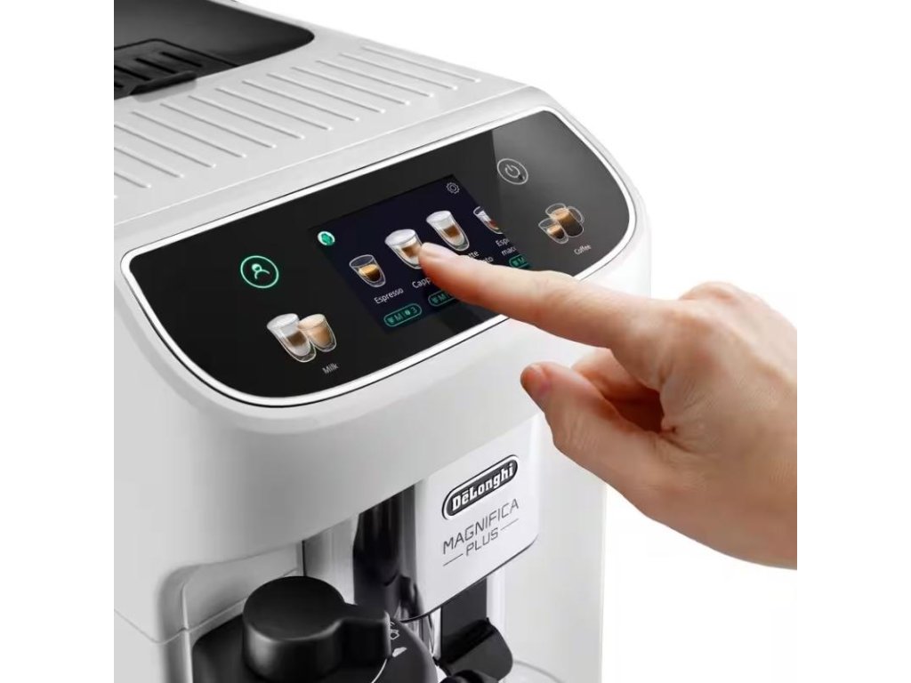 Kávovar De'Longhi Magnifica Plus pripraví lahodnú kávu pre každého. Môžete si vybrať z 15 nápojov, ktoré pripravíte jedným dotykom. Je vybavený pohlcujúcim 3,5\" plne dotykovým farebným displejom s bohatými animáciami a možnosťou prispôsobiť si obľúbené nápoje pomocou až 4 používateľských profilov. Vychutnajte si bohatú krémovú penu pripravenú technológiou LatteCrema Hot.