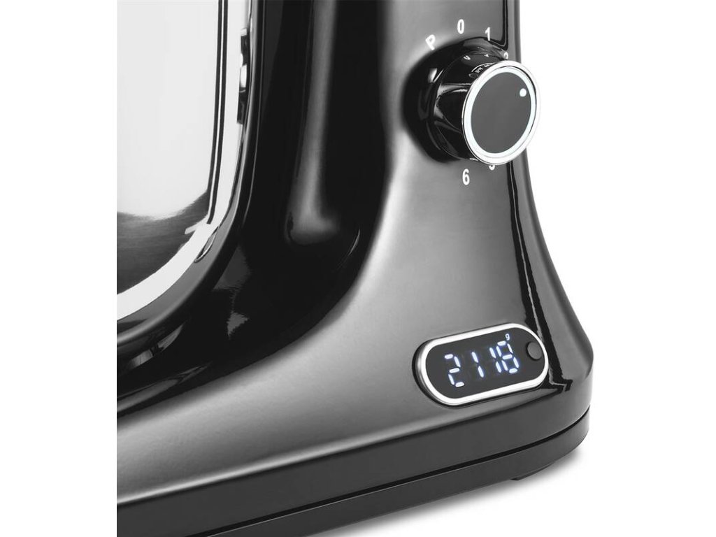 kuchynský robot • príkon 1 200 W • objem hlavnej nádoby 5 l • 6 rýchlostí • planetárny systém miešania • miesenie, mletie, strúhanie, šľahanie • nerezová nádoba • celokovové vyhotovenie • plynulá regulácia rýchlosti • displej • váha • hmotnosť 14,5 kg