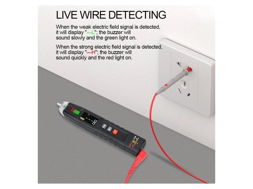 2) Postupne prejdite oblasť snímania NCV k nameranému vodičovi