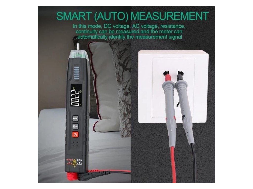 Inteligentné meranie sa vzťahuje na meranie jednosmerného napätia, striedavého napätia, odporu, kontinuity a môže automaticky identifikovať merací signál.