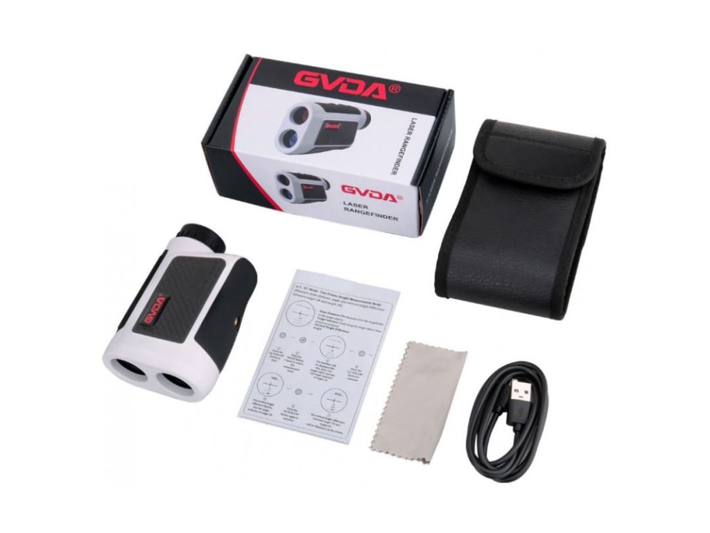 GVDA GD600A, Golfový laserový merač vzdialenosti 600m - Laserový diaľkomer GVDA GD600A je určený pre rýchle a presné meranie vzdialeností v rozsahu od 5 do 600 metrov. Meria tiež sklon v rozsahu: +/-90° a používa sa aj na vykonávanie nepriamych meraní na základe Pytagorovej vety, napríklad: hodnoty výšky založenej na nameranej vzdialenosti k vrcholu a uhlu sklonu. Funkciou diaľkomeru GVDA GD600A je schopnosť merať rýchlosť objektu (až 300 km/h). Pre pohodlie je diaľkomer vybavený 6-násobným optickým zoomom a nastavuje sa podľa ohniskovej vzdialenosti okuláru. Diaľkomer je napájaný 3,7V Li-ion lítiovou batériou s kapacitou 750 mAh. Nabíjanie prebieha cez microUSB port, ktorý je bezpečne uzavretý plastovou krytkou. Stupeň ochrany proti vlhkosti a prachu je IP54.