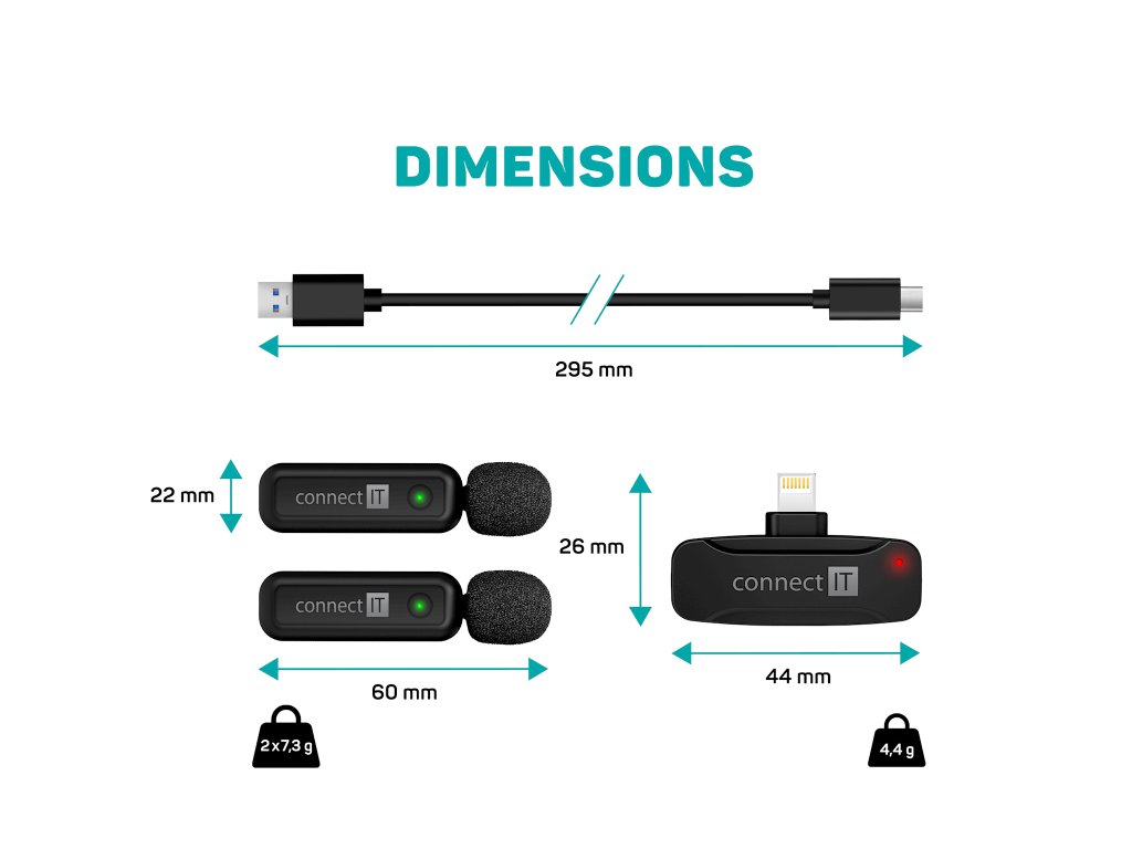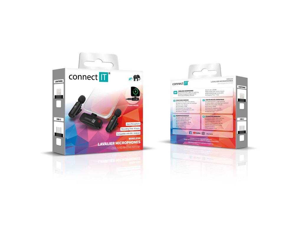 Connect IT CMI-1010-BK Lavalier wireless 2ks Lightning iOS, Android USB-C Mikrofon