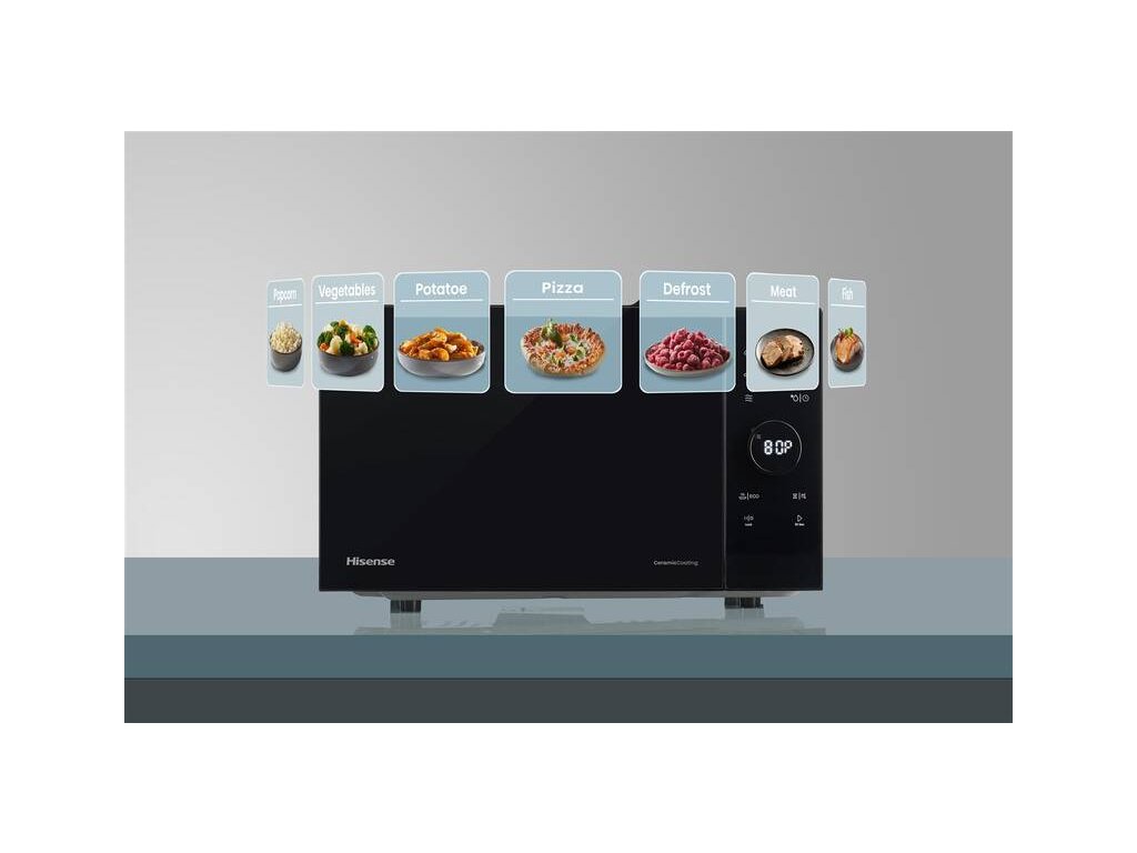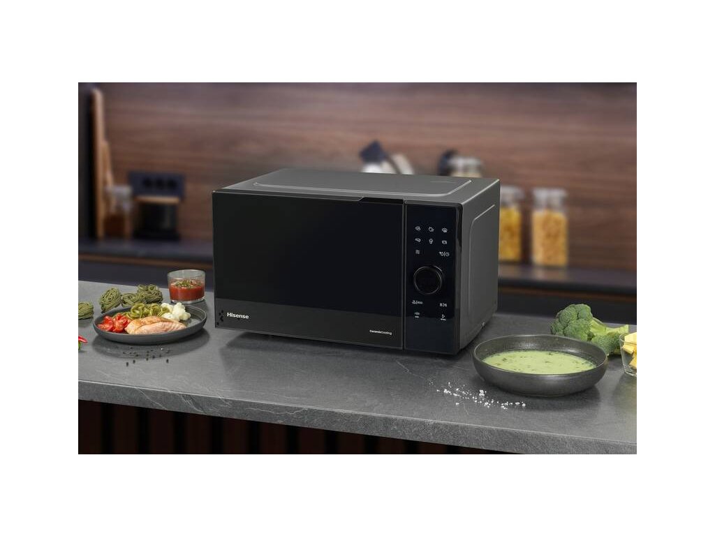 Hľadáte do svojej kuchyne štýlovú mikrovlnku? V tom prípade by vás mohla zaujať mikrovlnná rúra Hisense H23MOBSD2H4 s celkovým objemom 23 litrov. Tento model vás okrem nadčasového dizajnu milo prekvapí aj svojou praktickosťou. Zariadenie disponuje 10 stupňami výkonu a 6 prednastavenými programami, s ktorými si pripravíte najrôznejšie pokrmy. Pre pohodlnejšiu obsluhu je mikrovlnka opatrená funkciou pre rovnomerné rozmrazovanie a funkciou časovača, ktorú je možné nastaviť na až 60 minút.
