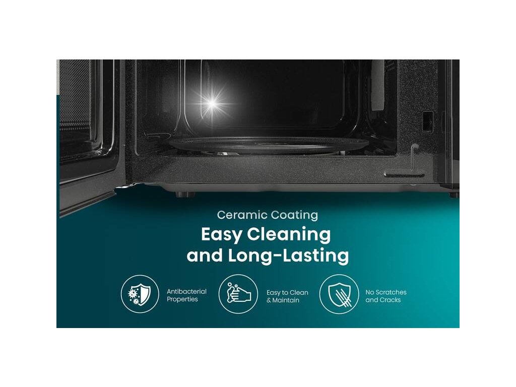 Vnútorný priestor mikrovlnnej rúry Hisense H23MOBSD2H4 je opatrený keramickým povrchom, ktorý prináša niekoľko praktických výhod. Vďaka tejto úprave je povrch mimoriadne pevný, a tak nehrozí poškriabanie či popraskanie. Ďalšou výhodou je, že jedlo pri ohreve nepriľne. Keramický povrch navyše disponuje antibakteriálnymi vlastnosťami a ľahko sa čistí.