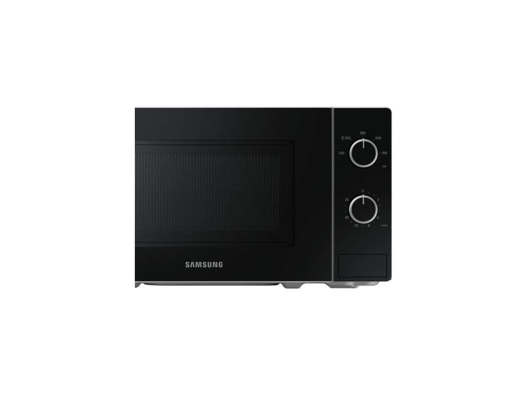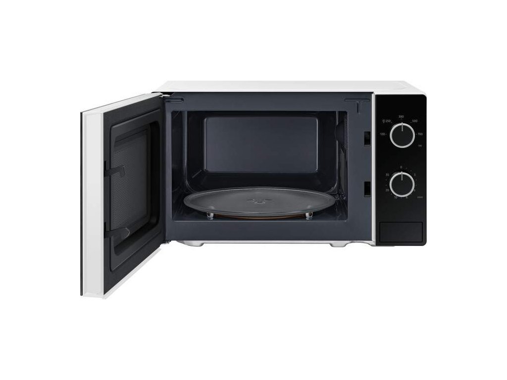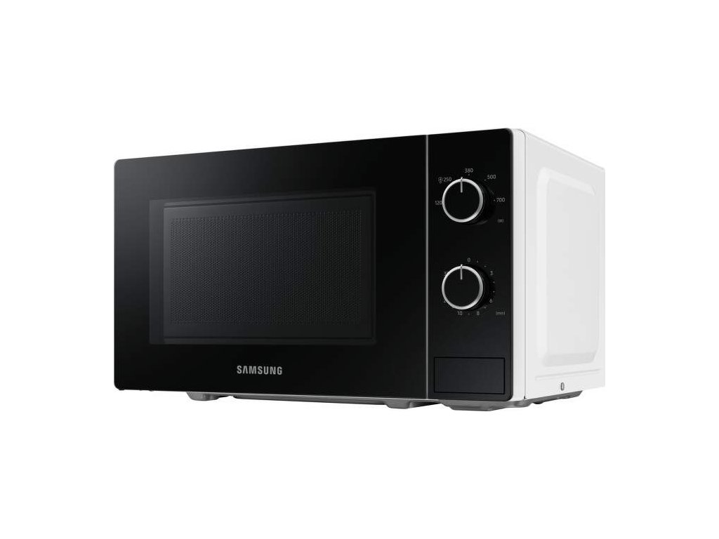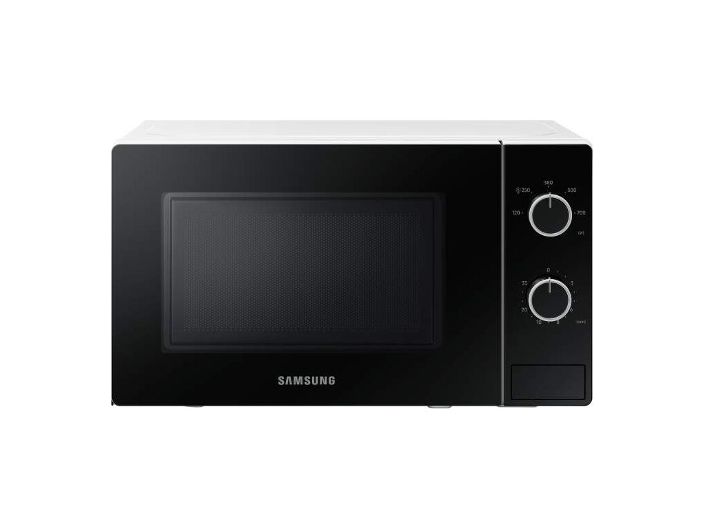 Mikrovlnná rúra Samsung MS20A3010AH/EO čierno bielom prevedení disponuje s objemom 20 l s jednoduchým mechanickým ovládaním. Ponúka 5 úrovni výkonu a vnútorný priestor je osvetlený pomocou Led. Veľkosť otočného taniera je 255 mm. Ponúka funkcie ako kuchynská minútka a rozmrazovanie. Otváranie dvierok je pomocou stlačenia tlačidla.