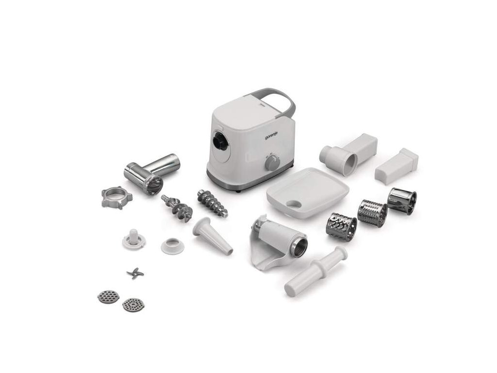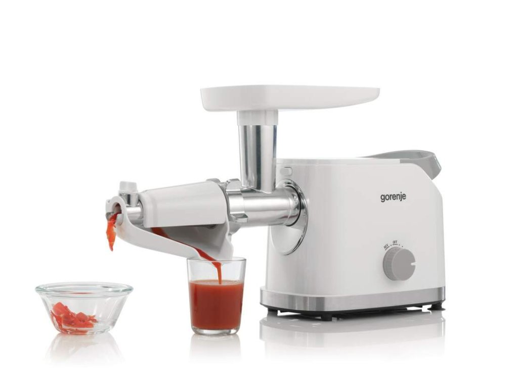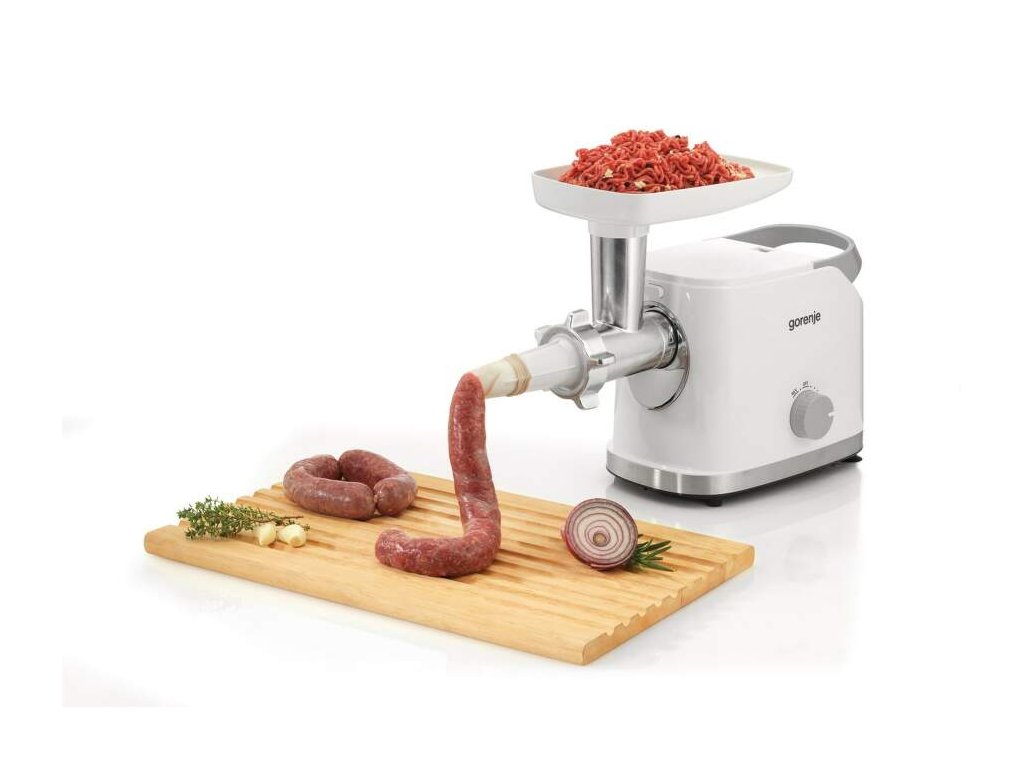 Mlynček na mäso Gorenje MG1802SJW vám ľahko a rýchlo namelie rôzne druhy mäsa. Počas chvíľky budete mať pripravené mäso na bolonskú zmes, klobásy, tatarák alebo hamburgery. Využiť ho ale môžete aj na krájanie alebo odšťavenie zeleniny či ovocia. Motor má silný výkon 1800 W a spracuje vybrané suroviny veľmi rýchlo. Priemer mlecieho kotúča predstavuje 54 mm a pomelie až 2,1 kg surovín za minútu. Zostavenie mlynčeka je jednoduché a rýchle. Rovnako tak aj jeho čistenie alebo ovládanie. K mlynčeku patrí bohaté príslušenstvo. Okrem 2 násad na mletie mäsa (3 mm a 8 mm) tu nájdete 1 plničku klobás, 3 nadstavce na strúhanie alebo krájanie. Ďalej tiež nadstavce na pomalé odšťavovanie, vtláčadlo a plastovú misku.