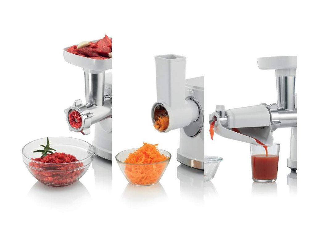 - Možné využiť na mletie, plnenie údenín, krájanie/strúhanie aj odšťavovanie