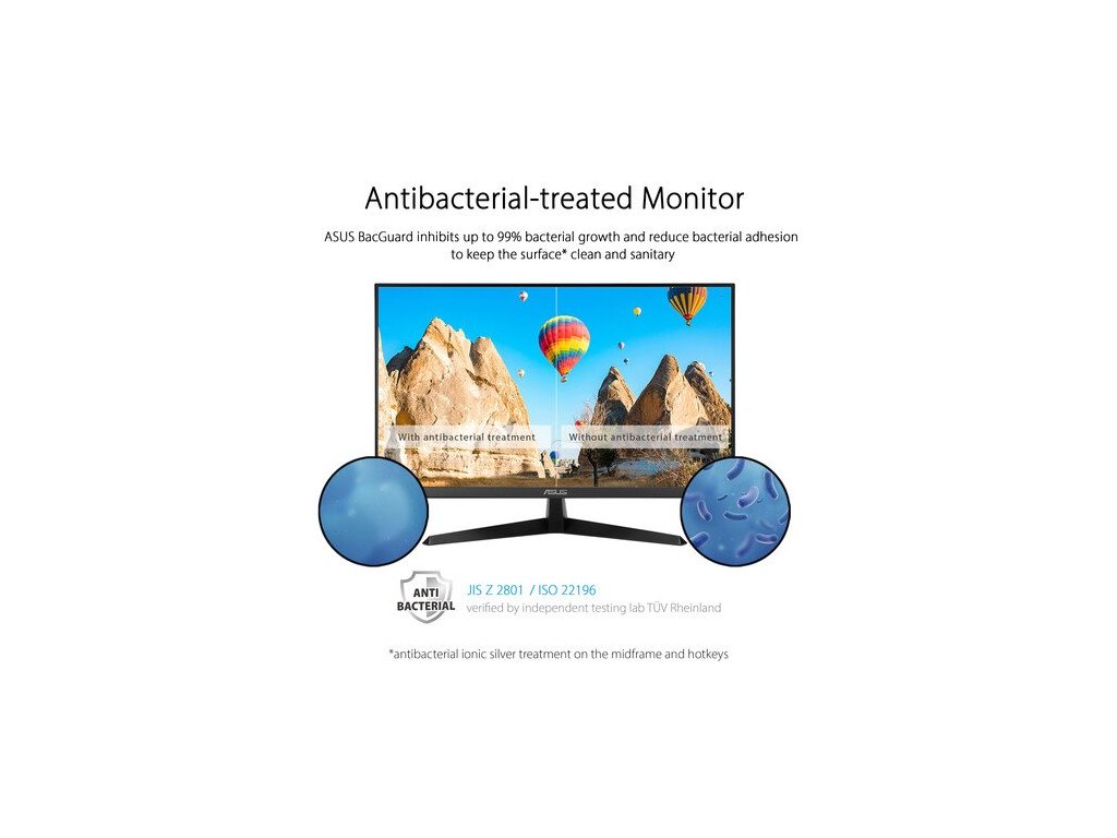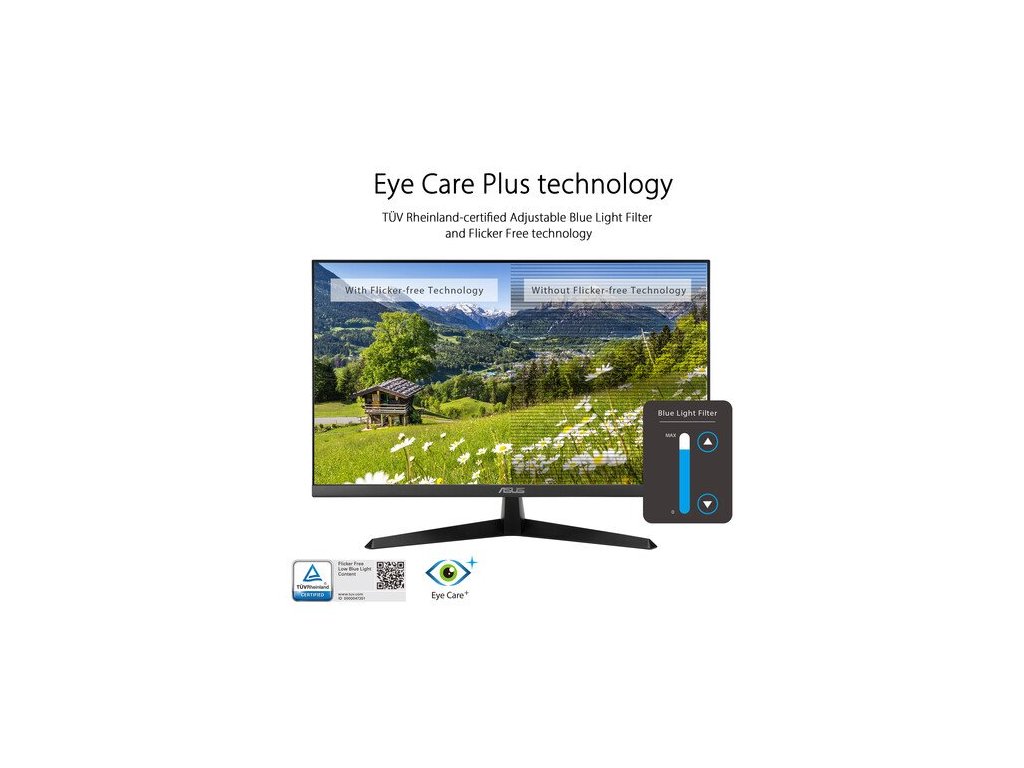 Herný monitor ASUS VY279HGR Eye Care – 27 palcový FHD (1920 x 1080), IPS, 120 Hz(OC), SmoothMotion, 1 ms (MPRT), Adaptive Sync, Technológia Eye Care Plus, Filter modrého svetla, Flicker Free, antibakteriálna úprava27" FHD IPS panel s obnovovacou frekvenciou 120 Hz (OC) pre plynulé sledovanie videa a príležitostné hranie