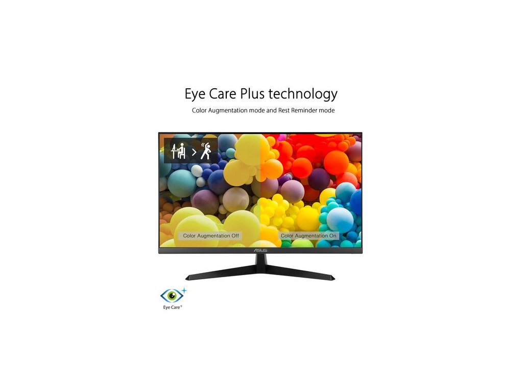Technológia Eye Care Plus zahŕňa režim Color Augmentation pomáha používateľom s nedostatkom farebného videnia lepšie rozlišovať medzi farbami a Rest Reminder pomáha používateľom spravovať čas strávený pred obrazovkou.
