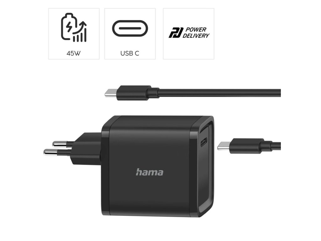 Hama USB-C 45W 200005 Power Delivery čierna Nabíjačka do siete