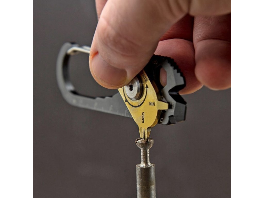 Multifunkčné náradie The Fixr od britskej firmy True Utility možno vďaka jeho kompaktným rozmerom mať neustále pri sebe. Potrebujete otvoriť fľašu, utiahnuť skrutku u skrinky alebo u hodiniek? Na to všetko vám vystačí toto univerzálne náradie! The Fixr je vyrobený z kvalitnej nehrdzavejúcej ocele, potiahnuté vrstvou čierneho titánu. Má zabudovanú karabínu pre rýchle a jednoduché upínanie ku krúžku na kľúče alebo priamo k opasku. Môžete si ho so sebou zobrať bezpečne i do lietadla.