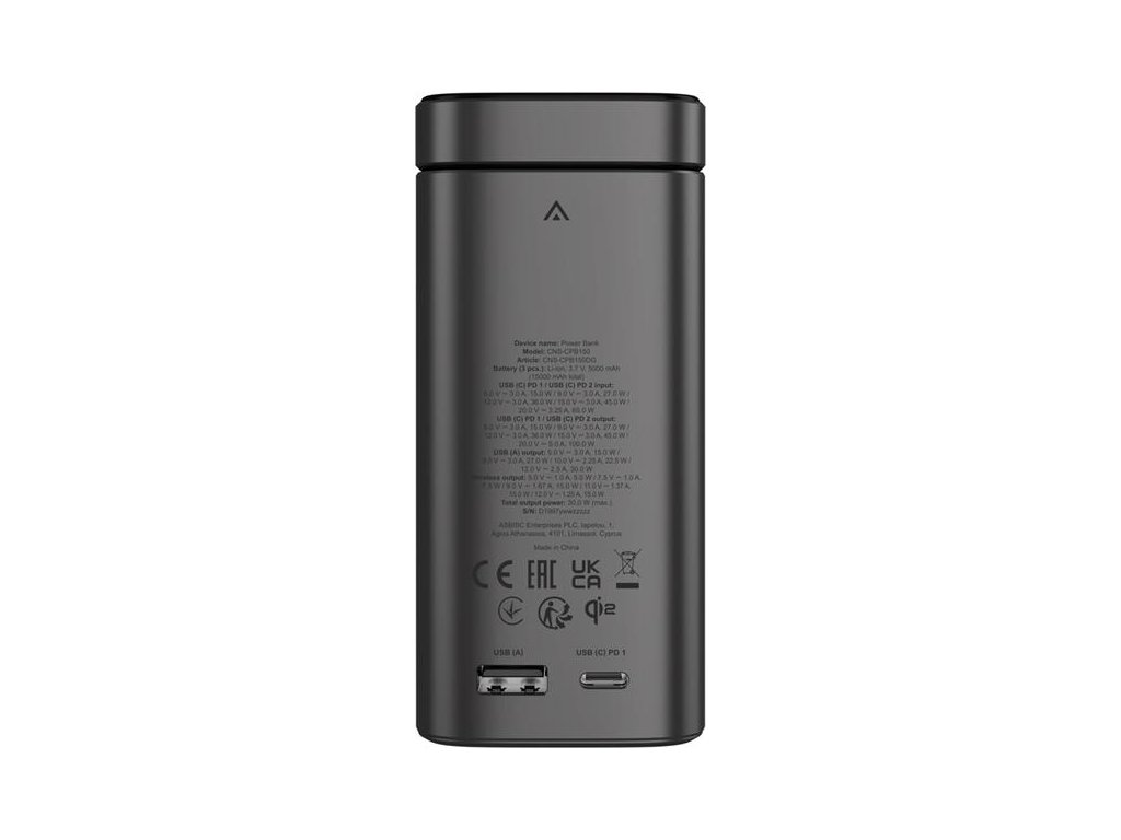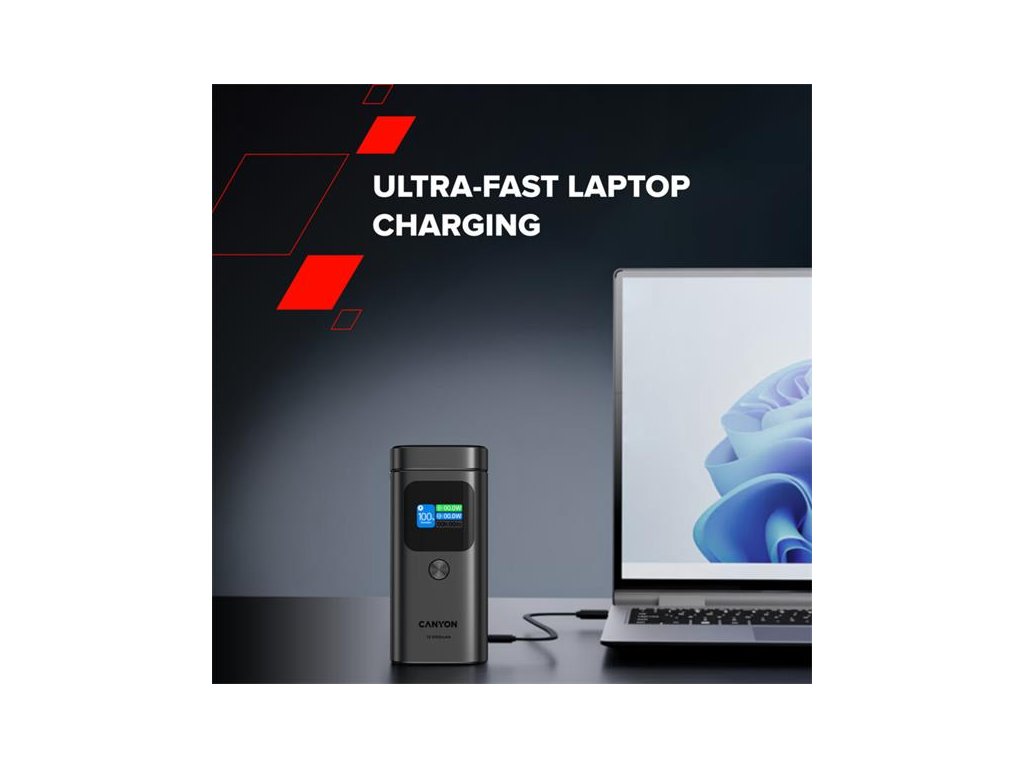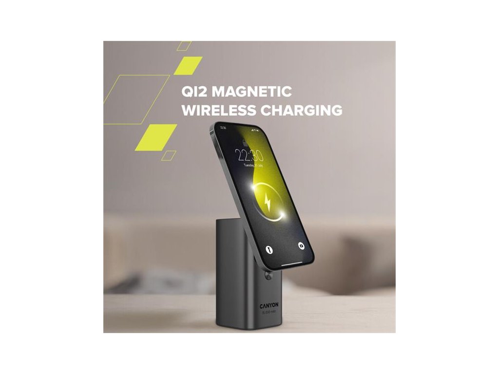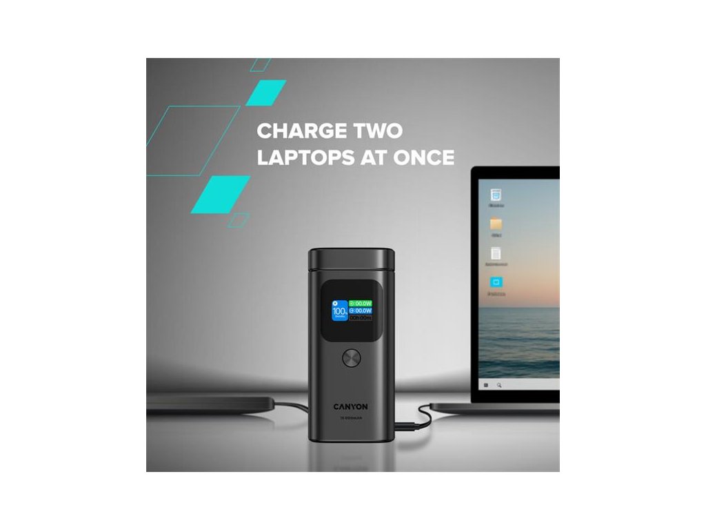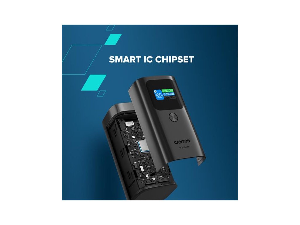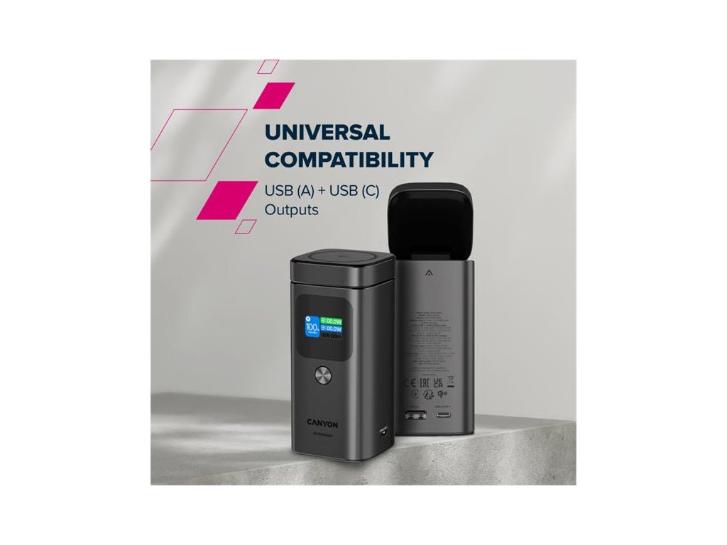 Canyon OnPower 150, Powerbank, 15.000 mAh, 100W, displej, in:USB-C, out:2x USB-C/1xUSB-A, Qi2 bezdr. nabíjanie
