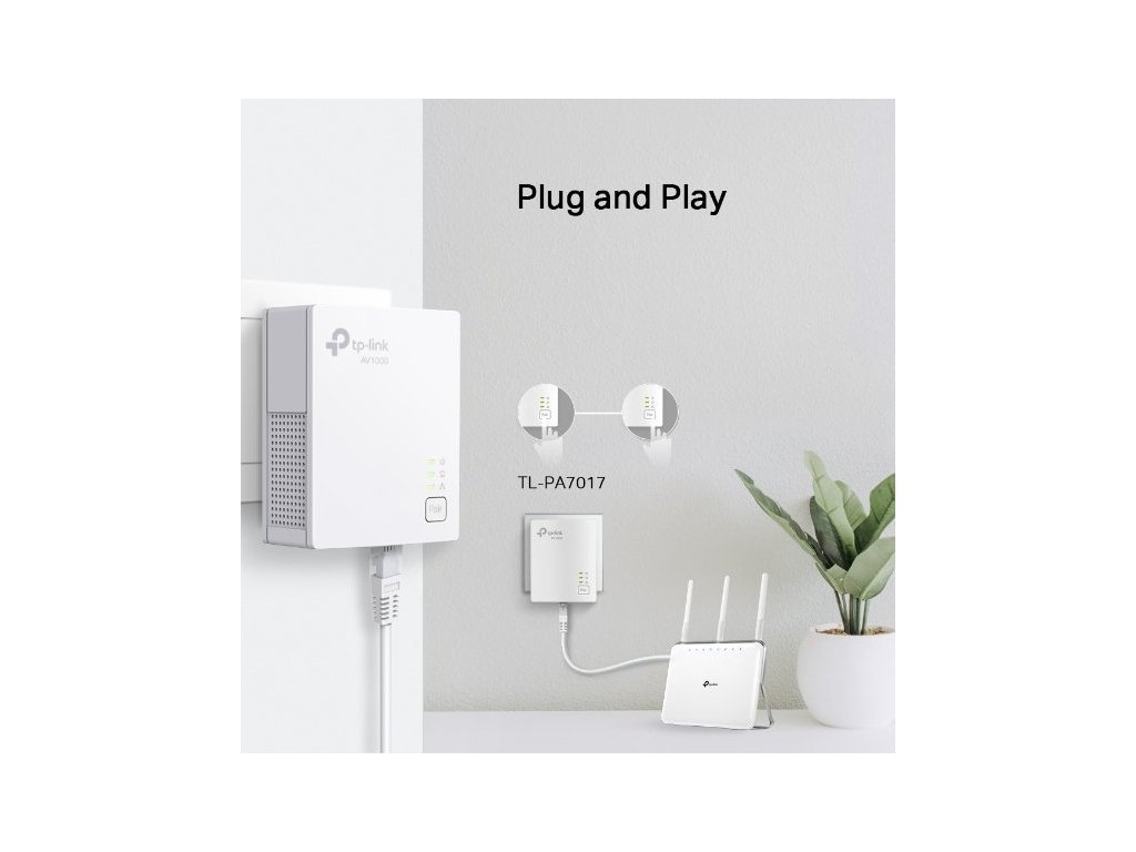 AV1000 Gigabit Powerline Starter Kit (bez prechodových zásuviek), rýchlosť: 1000 Mbps Powerline, Broadcom CPU, HomePlug AV2, 1x Gigabit Port, Plug and Play, tpPLC Utility, Pair for More Security, sada obsahuje: 2x TL-PA7017