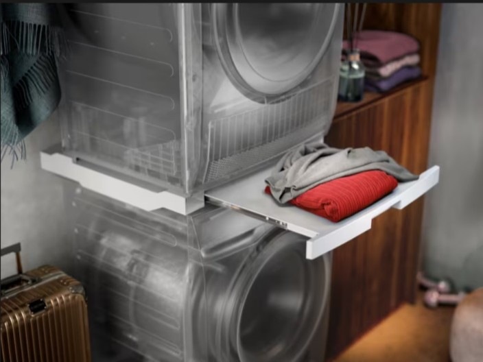 Súčasťou spojovacej sady AEG A1WYHSK2 je tiež praktická výsuvná polica, ktorú môžete využiť na odkladanie, triedenie alebo skladanie vašej bielizne. Akonáhle máte hotovo stačí ju len zasunúť späť medzi práčku a sušičku.