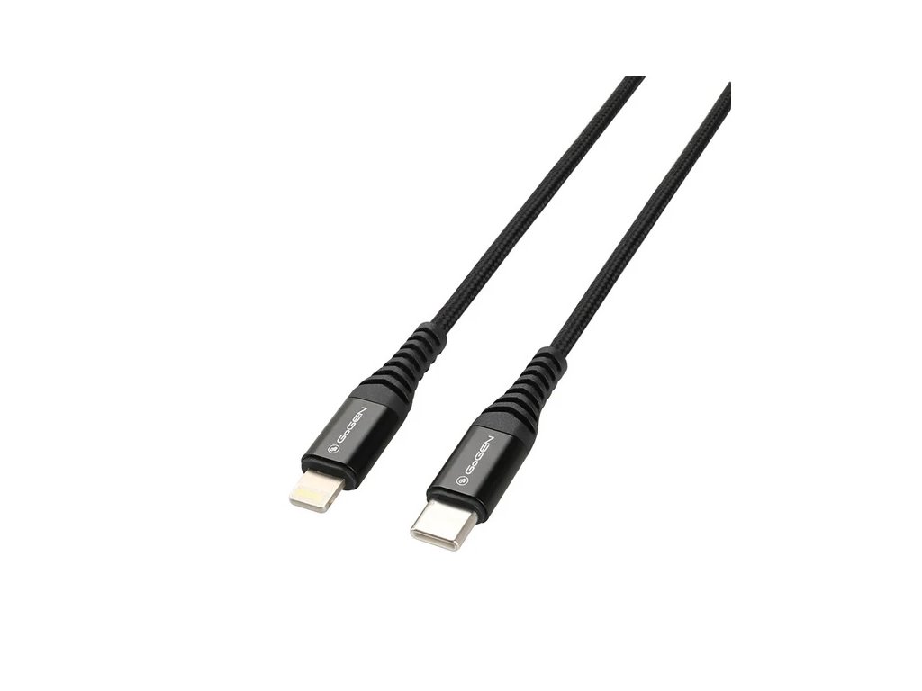 GSM kábel GoGEN s koncovkami USB-C a Lightning slúži na rýchle nabíjanie mobilného telefónu alebo bezproblémový prenos dátových súborov.