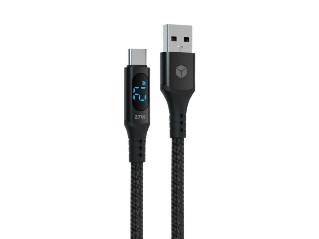 Spoľahlivý 27W USB na Type-C nabíjací kábel s rýchlym QC 3.0 nabíjaním a zabudovaným LED displejom, ktorý vám okamžite ukáže aktuálny výkon. Tento kábel s odolným nylonovým opletením je navrhnutý pre rýchle a efektívne nabíjanie vašich zariadení.