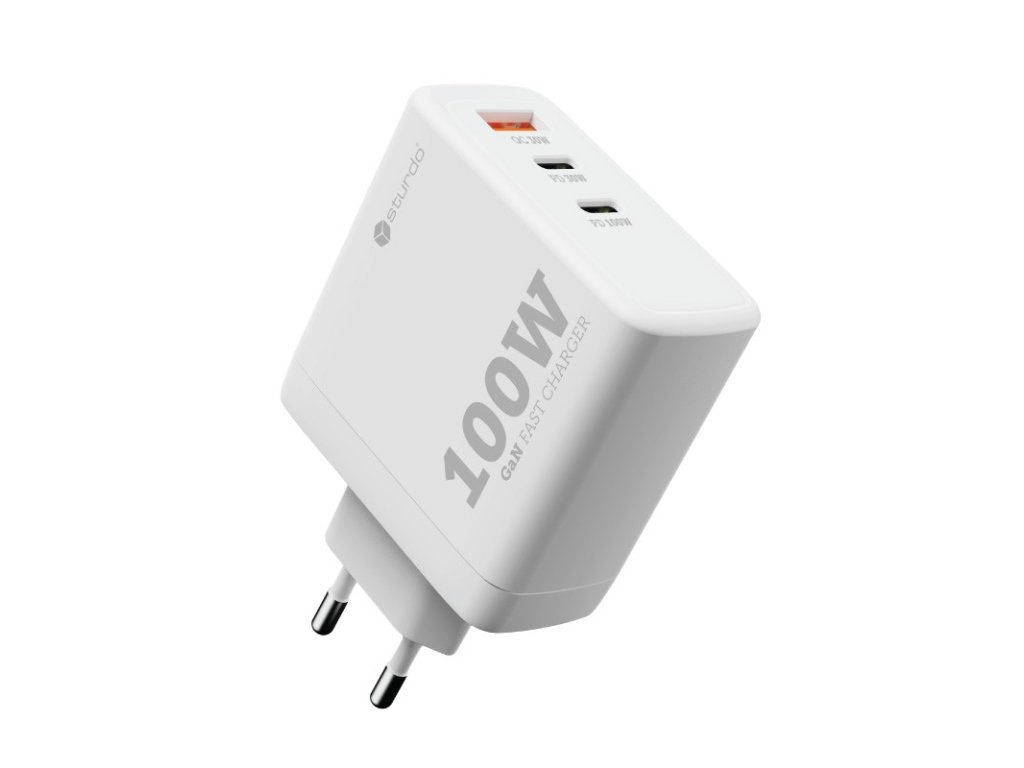 Sieťová nabíjačka STURDO 100W s GaN technológiou a 3 portmi (2× Type-C, 1× USB-A) je ideálna na rýchle nabíjanie smartfónu, tabletu aj notebooku. Hlavný Type-C port podporuje Power Delivery až 100W, druhý Type-C až 30W a USB-A ponúka rýchlonabíjanie QC 3.0 do 30W, vrátane podpory HONOR SuperCharge (FCP/SCP). Pri nabíjaní viacerých zariadení rozdelí výkon inteligentne, napríklad 65W + 30W (max. 95W) alebo pri troch zariadeniach 65W + 15W (max. 80W). Univerzálny vstup 100–240V z nej robí skvelú voľbu aj na cestovanie. GaN – menšia veľkosť a hmotnosť, viac výkonu, menej tepla, čo prispieva k dlhšej životnosti a bezpečnosti.