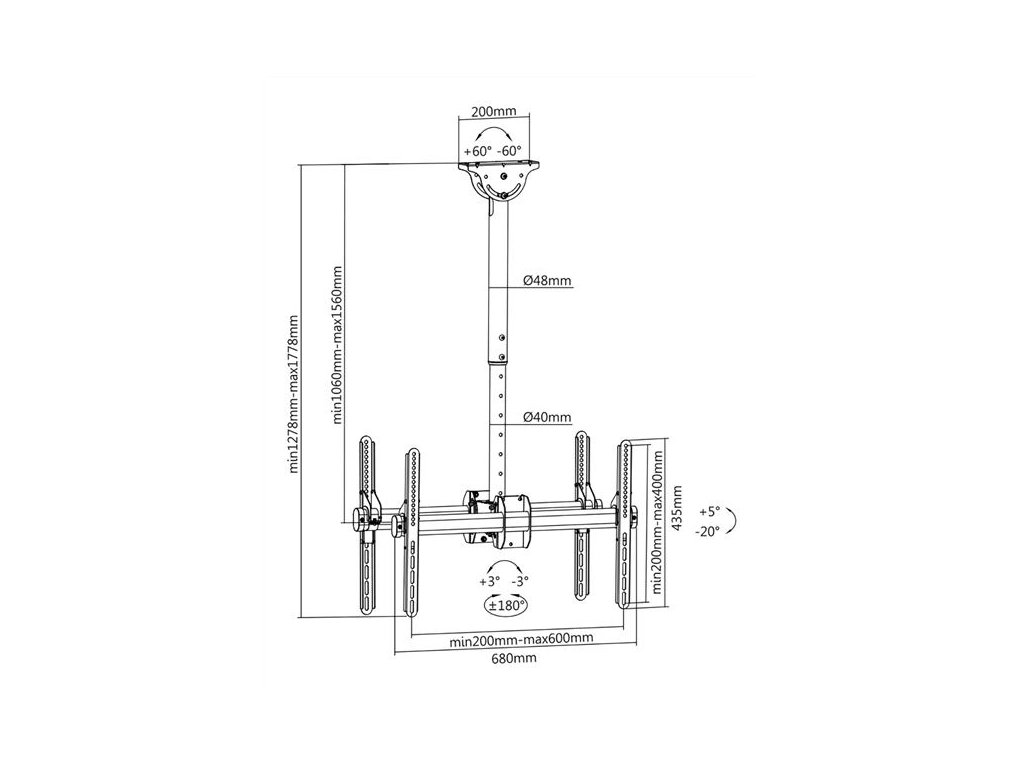 DELTACO ARM-0404, Stropný držiak na TV 37"-70"