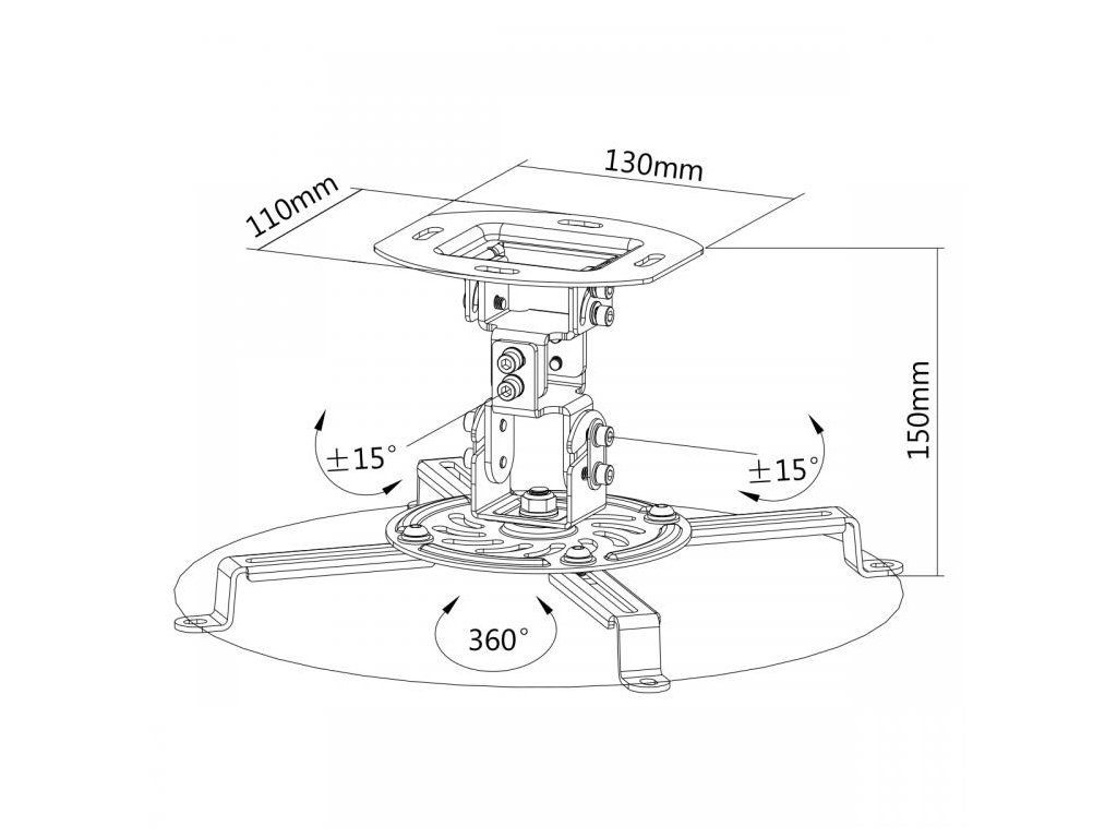 Stropný držiak na projektor, nosnosť: 13,5kg, montáž: od 54 do 320mm, náklon: -15° až + 15°, otáčanie: 360°, výška: 150mmDodatočné parametre