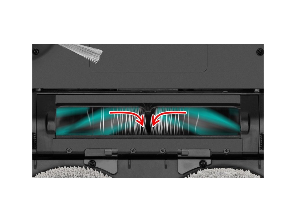 - Rotační kartáč s floating systémem lépe kopíruje povrch včetně nerovnosti a efektivně sbírá nečistoty