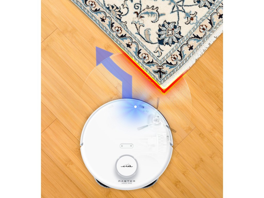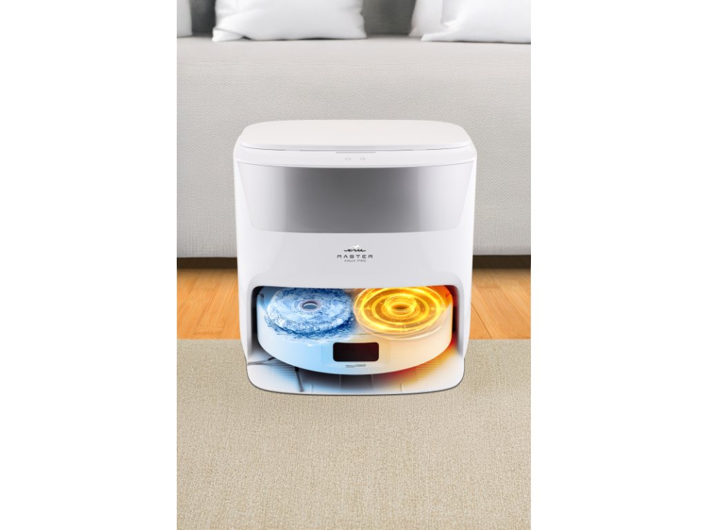 Robotický vysavač ETA Master Aqua Pro s rotačními mopy spojuje 4 funkce v 1 a přináší špičkový úklid podlah bez námahy. Nabízí inovativní systém mopování, automatické praní a sušení mopů horkým vzduchem (až 45 °C) i automatické dávkování čisticího prostředku. Speciální konstrukce kartáčů minimalizuje namotávání vlasů a chlupů, zatímco možnost sáčkového i bezsáčkového provozu přináší cennou flexibilitu. O přesný pohyb se stará laserová navigace s 3D skenováním a bezdotykovým vyhýbáním i drobným předmětům. Ultrasonický senzor umožňuje funkci Autoboost a automatické zvedání mopů na kobercích. Extrémní sací výkon až 8000 Pa, výkonná Li-Ion baterie 5200 mAh s výdrží až 240 minut a hlučnost nepřesahující 75 dB řadí tento model mezi nejvýkonnější, a přitom velmi tichý vysavač ve své třídě. Vysavač můžete pohodlně ovládat přes aplikaci ETA SMART (v CZ, SK, DE, ENG, HU). Vysavač má hlasový doprovod v češtině, slovenštině a angličtině, ovládání je tak maximálně intuitivní.
