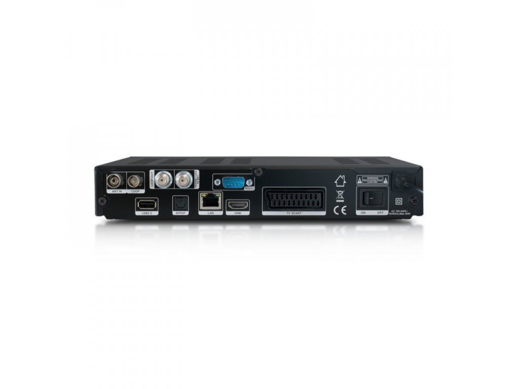 Prijímač má konektory: 1x HDMI, 1x SCART, 1x USB 2.0, 1x LAN, 1x RS232, 1x S / PDIF. Pre vloženie satelitné karty má klasický CI slot.