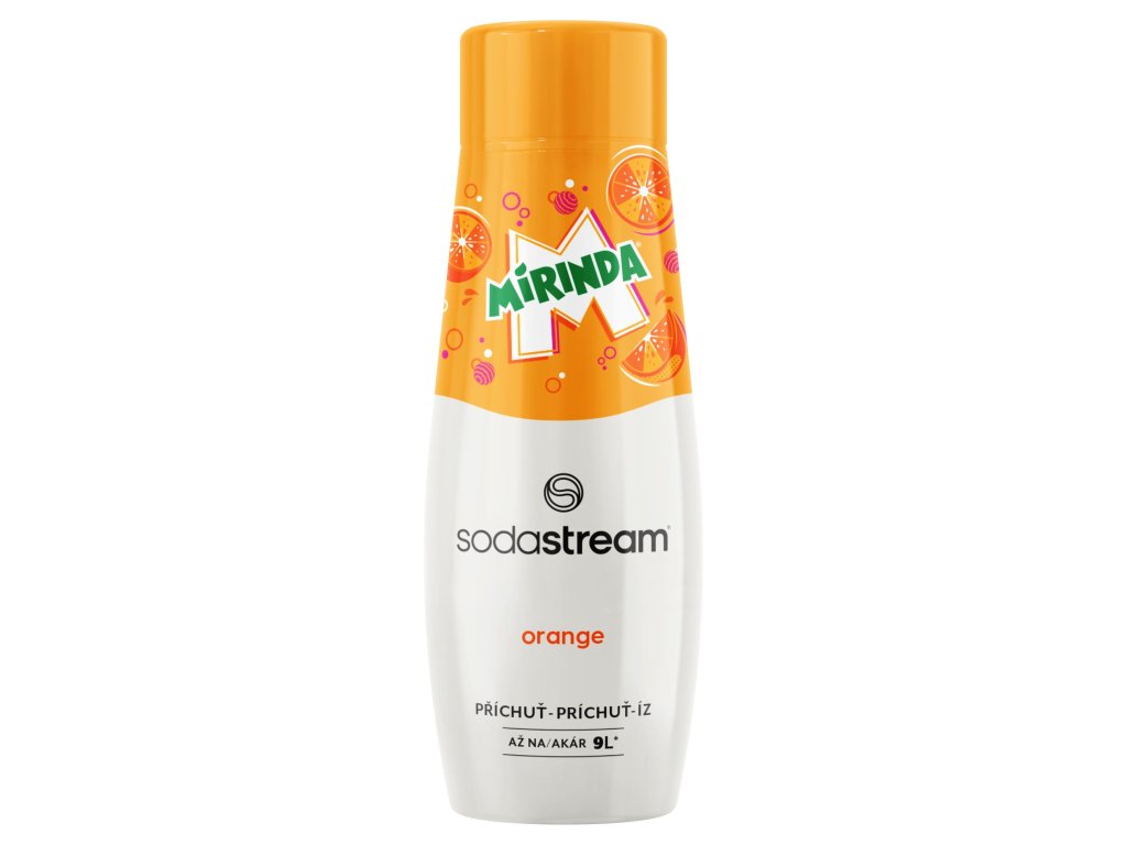 Mirinda 440 ml je vysoko koncentrovaná príchuť pre perlivú vodu vytvorená pre systém SodaStream - z jedného 440 ml balenia je možné si pripraviť až 9 veľkých SodaStream fliaš s obľúbeným nápojom Mirinda a to komfortne, v pohodlí domova. Je načase sa raz a navždy rozlúčiť s vláčením a skladovaním jednorazových plastových fliaš a dopriať si maximálny komfort a jednoduchosť so systémom SodaStream. Príchuť pridávaj vždy až do hotovej perlivej vody, nikdy nie pred sýtením!