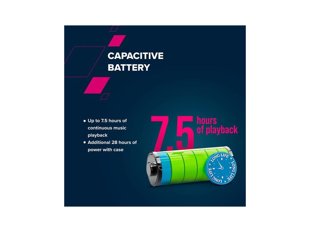 S výdržou až 7,5 hodiny nepretržitého prehrávania a nabíjacím puzdrom, ktoré poskytuje ďalších 18 hodín energie, si môžete vychutnať svoju obľúbenú hudbu bez prerušenia. Navyše pohodlná funkcia bezdrôtového nabíjania uľahčuje udržiavanie slúchadiel v nabitom stave.
