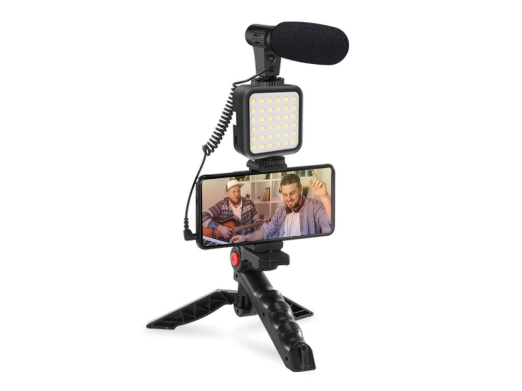 Súprava na vlogovanie je navrhnutá tak, aby obohatila vaše videá o lepší zvuk a osvetlenie vo vnútri aj vonku. Je vybavený univerzálnym mikrofónom pre prácu s akýmkoľvek chytrým telefónom alebo fotoaparátom, LED lampou s 36 super jasnými LED diódami, rukoväťou na prenášanie, ktorú možno použiť ako statív, a vstavaným držiakom, ktorý vám umožní pripevniť nielen telefón, ale aj lampu a mikrofón.