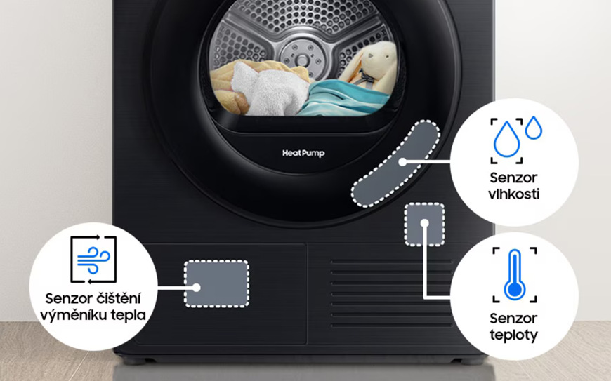 Inteligentný spôsob sušenia používa 3 typy senzorov na optimálne výsledky. Sušička neustále monitoruje vlhkosť a podľa toho upravuje čas programu. Vaše oblečenie dostáva tú najlepšiu starostlivosť. V prípade potreby produkt indikuje potrebu čistenia výmenníka tepla.