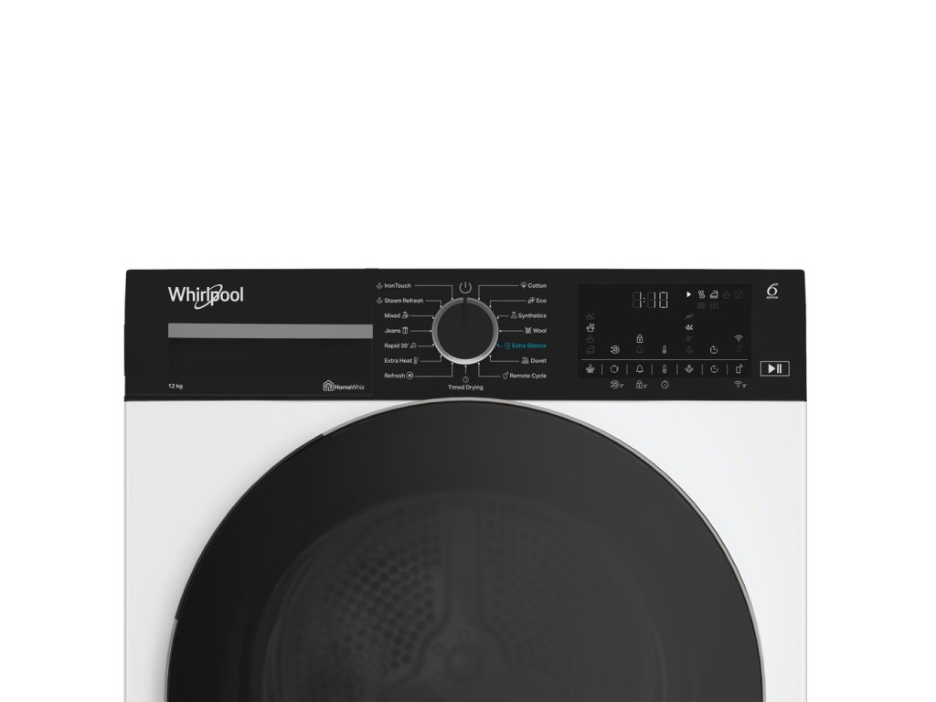 Výhody tejto voľne stojacej sušičky bielizne Whirlpool: kapacita bubna 12,0 kg. Exkluzívna technológia 6. ZMYSEL neustále monitoruje vlhkosť v bubne, chráni vaše oblečenie a poskytuje ideálne výsledky sušenia. Pripojenie, ktoré umožňuje spotrebiču prijímať informácie o cykle prania používanom práčkou a podľa toho upraviť nastavenia pre dosiahnutie ideálnych výsledkov. Elegantný dizajn tmavých dverí. Prevetrávanie parou pre šetrné a hygienické sušenie, ktoré znižuje pokrčenie a osviežuje vaše veci.