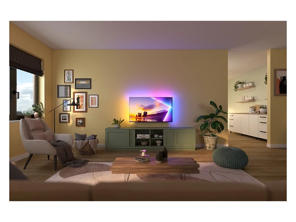 Kompatibilita so štandardom Matter Smart Home prináša bezproblémovú integráciu do existujúcej inteligentnej domácej siete. Ak chcete televízor ovládať z aplikácie Matter Smart Home alebo pomocou služieb hlasového ovládania, jednoducho stlačte tlačidlo na diaľkovom ovládači a hovorte. Stmievajte svetlá. Nastavte si termostat. Dokonca zapnite televízor Philips s funkciou Ambilight. To všetko jediným príkazom. Televízor je kompatibilný aj s inteligentnými reproduktormi Google a Apple AirPlay.