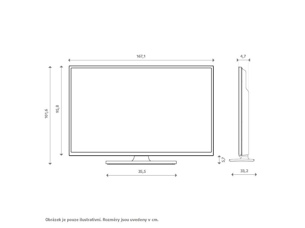 | Rozmery TV s podstavcom Š/V/H: | 1670,6×1015,6×331,5mm |