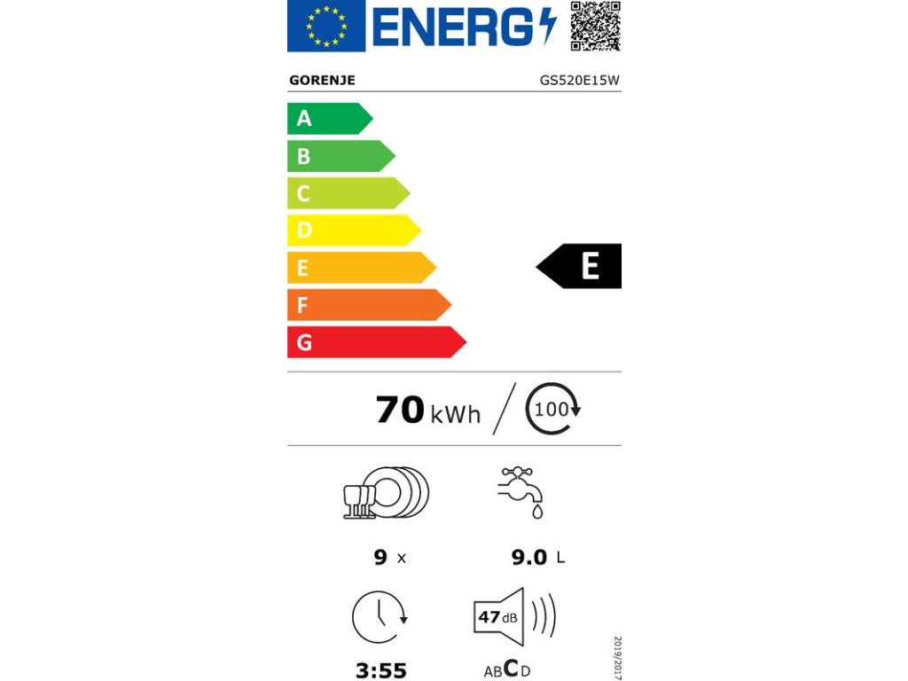 Umývačka riadu Gorenje GS520E15W z radu Essential je ideálnym riešením pre každú domácnosť, ktorá hľadá efektívne a spoľahlivé zariadenie. Táto voľne stojaca umývačka dosahuje hlučnosť iba 47 dB a spadá do energetickej triedy E. Na jeden umývací cyklus spotrebuje umývačka 9 litrov vody. Disponuje 4 umývacími teplotami a ponúka širokú škálu umývacích programov vrátane Rýchleho programu, Namáčania, Intenzívneho umývania, Eco programu a Hodinového umývania.