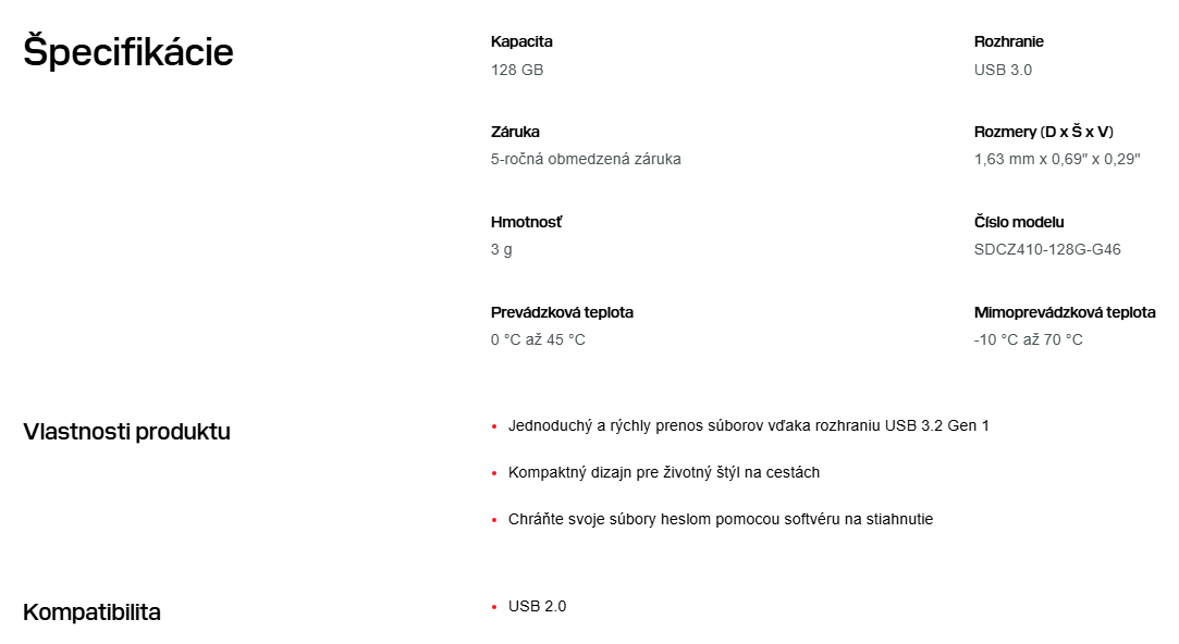 - Ochrana heslom využíva 128-bitové šifrovanie AES a je podporovaná systémom Windows® 10+ a macOS v10.9+ (vyžaduje sa stiahnutie softvéru, pozri www.SanDisk.com/SecureAccess ).