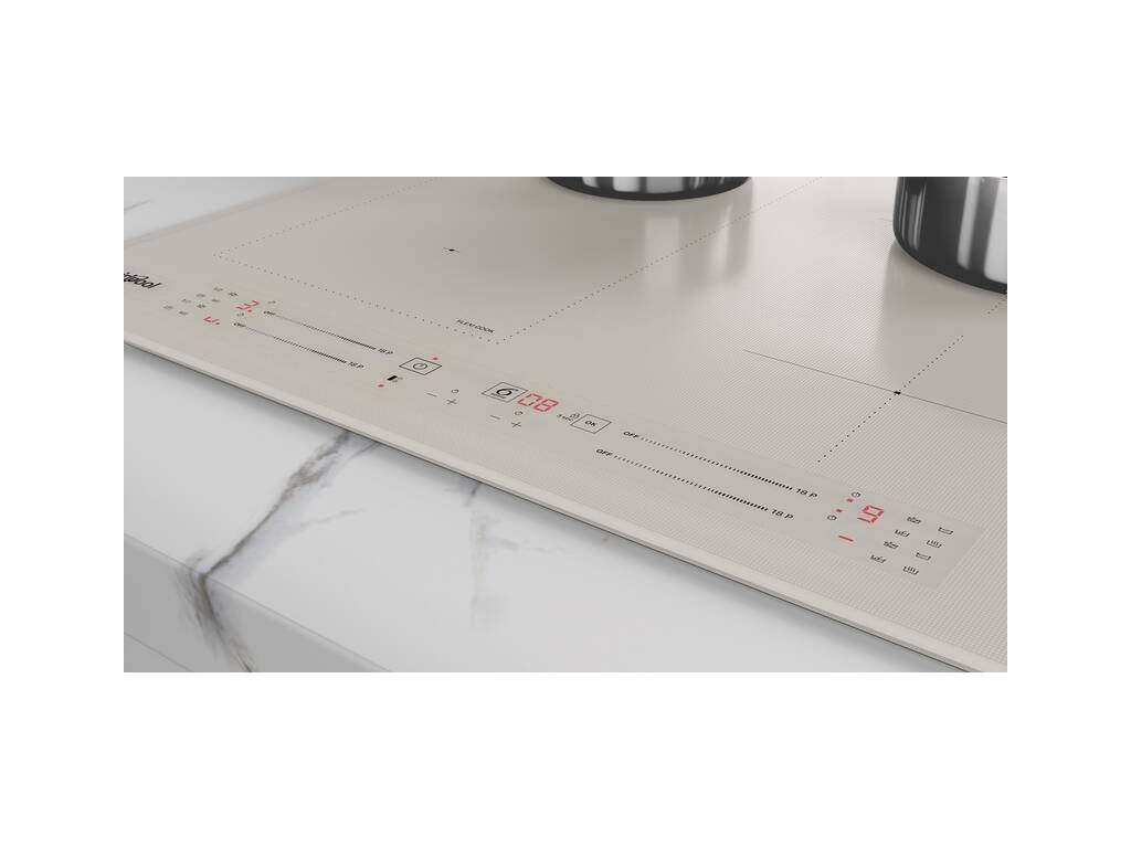 Indukčná varná doska Whirlpool WL S2760 BF/S vo farbe Champagne so šírkou 59 cm má 4 varné zóny s jednou FlexiCook zónou a funkciou Booster. Má technológiu 6. Zmysel, funkciu PowerManagement, detskú poistku aj časovač.