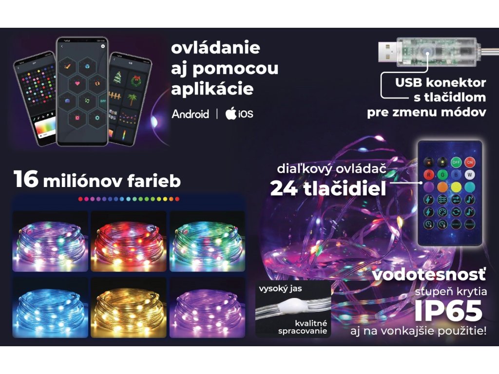 Smart LED pás s dĺžkou 10 metrov a 100 svetiel. Tento inovatívny LED pás spojuje špičkovú LED technológiu s inteligentnými funkciami, prinášajúc do vášho domova úplne nový zážitok z osvetlenia. S jeho inteligentnými ovládacími možnosťami získavate absolútnu kontrolu nad atmosférou vo vašich priestoroch. S možnosťami prispôsobenia farieb, intenzity svetla a rôznymi svetelnými efektmi môžete vytvárať a meniť atmosféru podľa svojich momentálnych preferencií. Zariadenie s krytím IP65 je úplne prachotesné a odolné voči striekajúcej vode, čo ho robí ideálnym aj na vonkajšie použitie v náročných podmienkach.