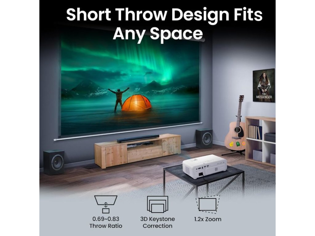 Kalkuláciu vzialenosti projektora si môžete vypočítať na: https://projectorcalculator.benq.com/